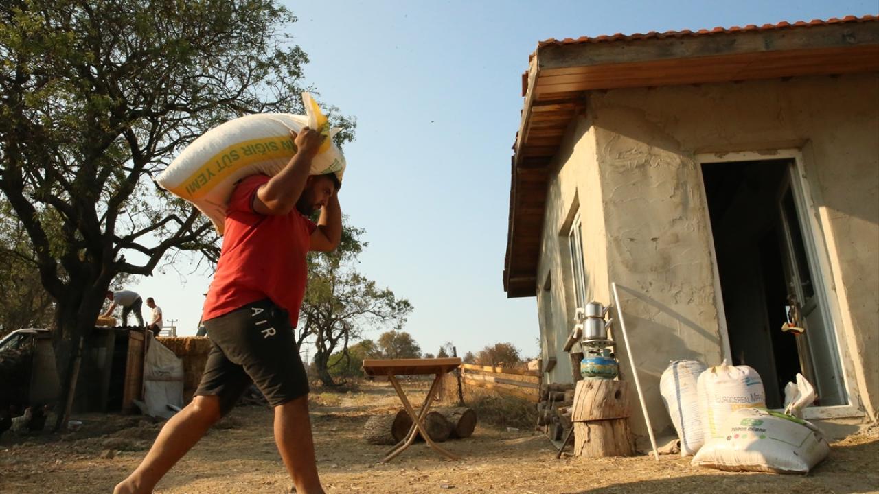 Çanakkale'de iki gün süren orman yangınının ardından köylülere büyükbaş ve küçükbaş hayvanlarının yem ihtiyacını karşılamalarında devlet kurumları ve hayırseverler tarafından destek sağlanıyor.
