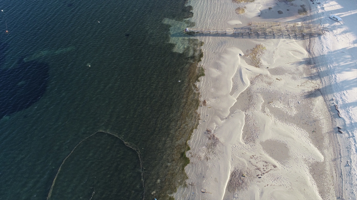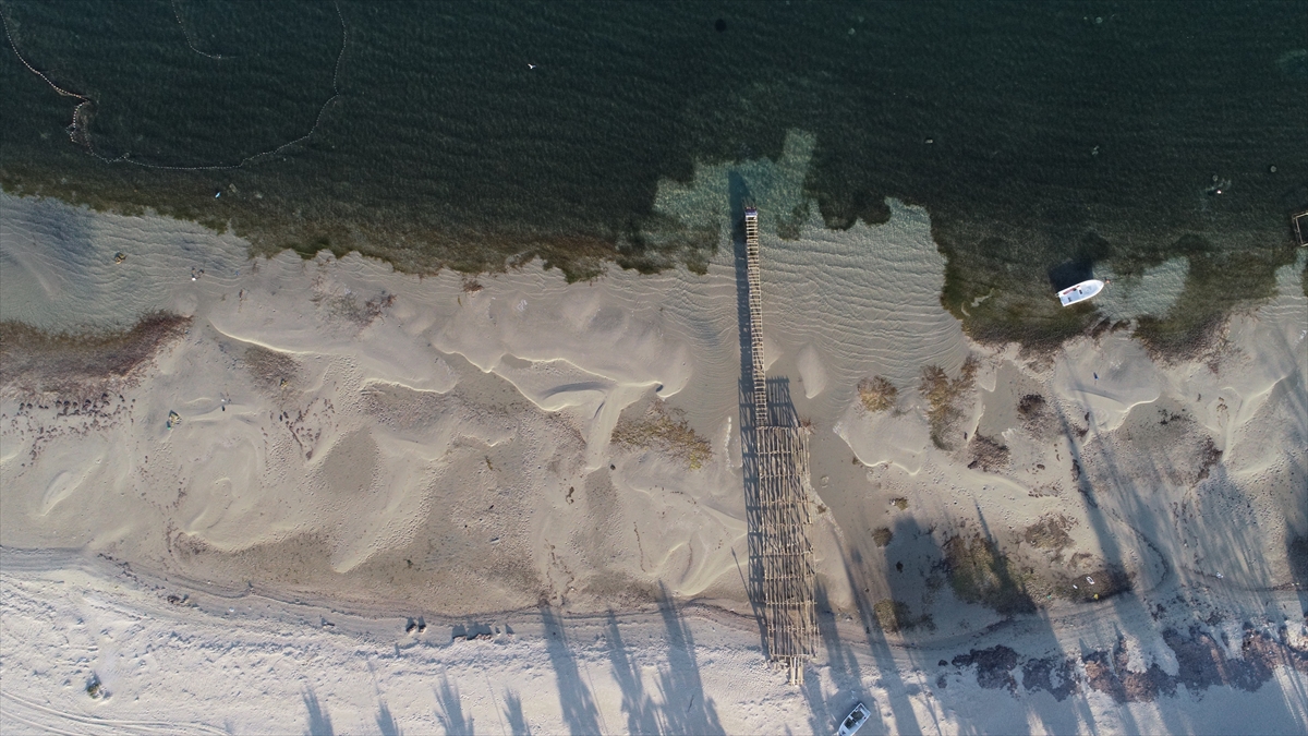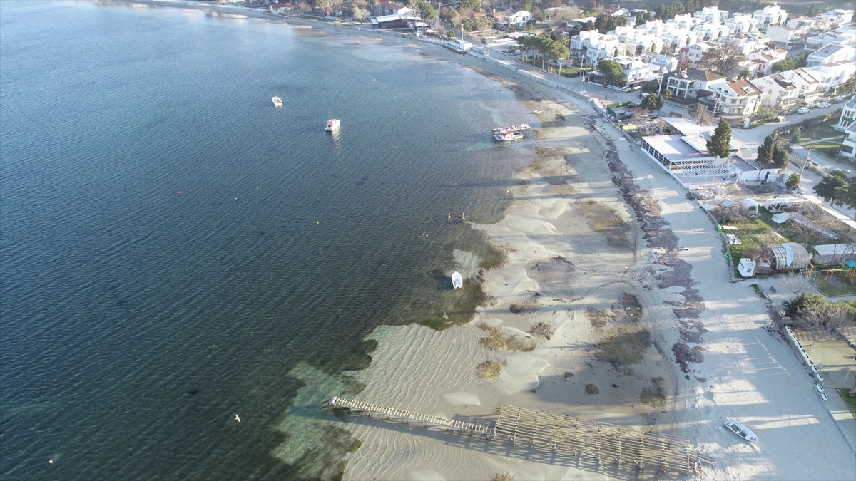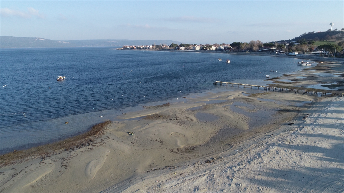 Deniz kıyısında yaşanan su çekilmesiyle sahil kesimlerinde küçük adacıklar oluştu.