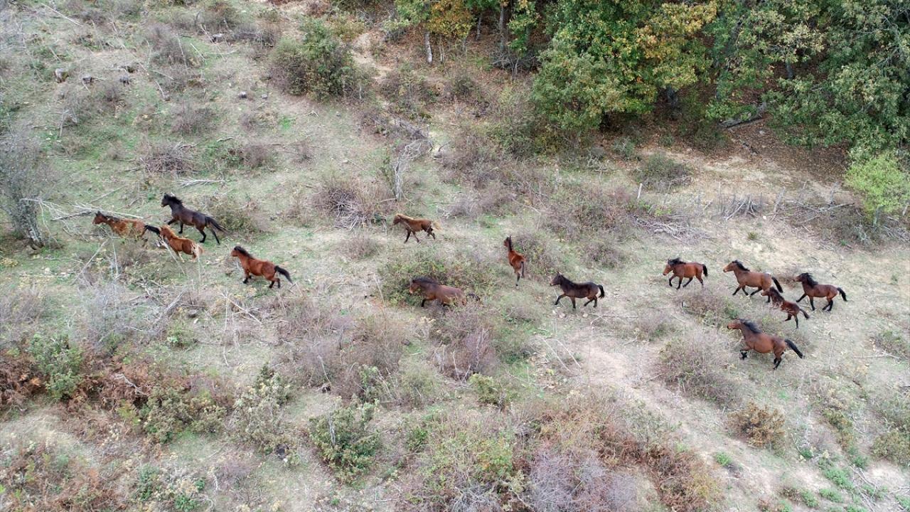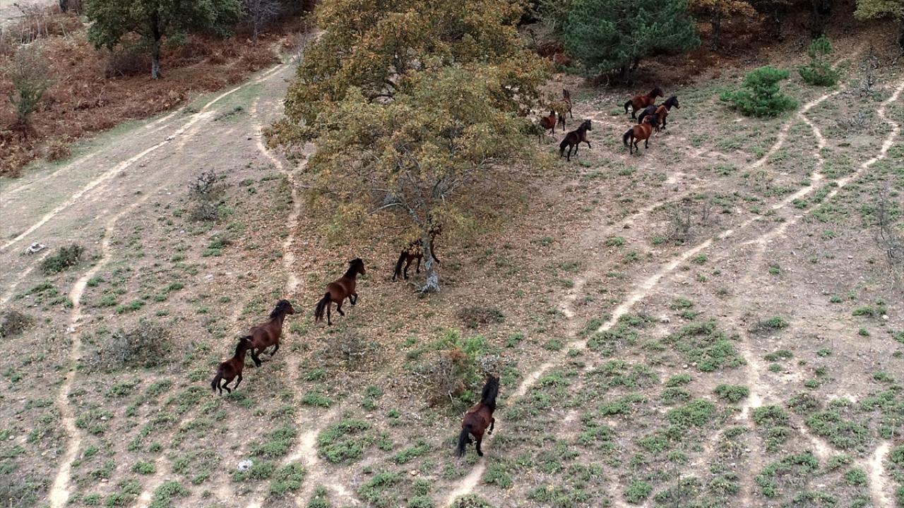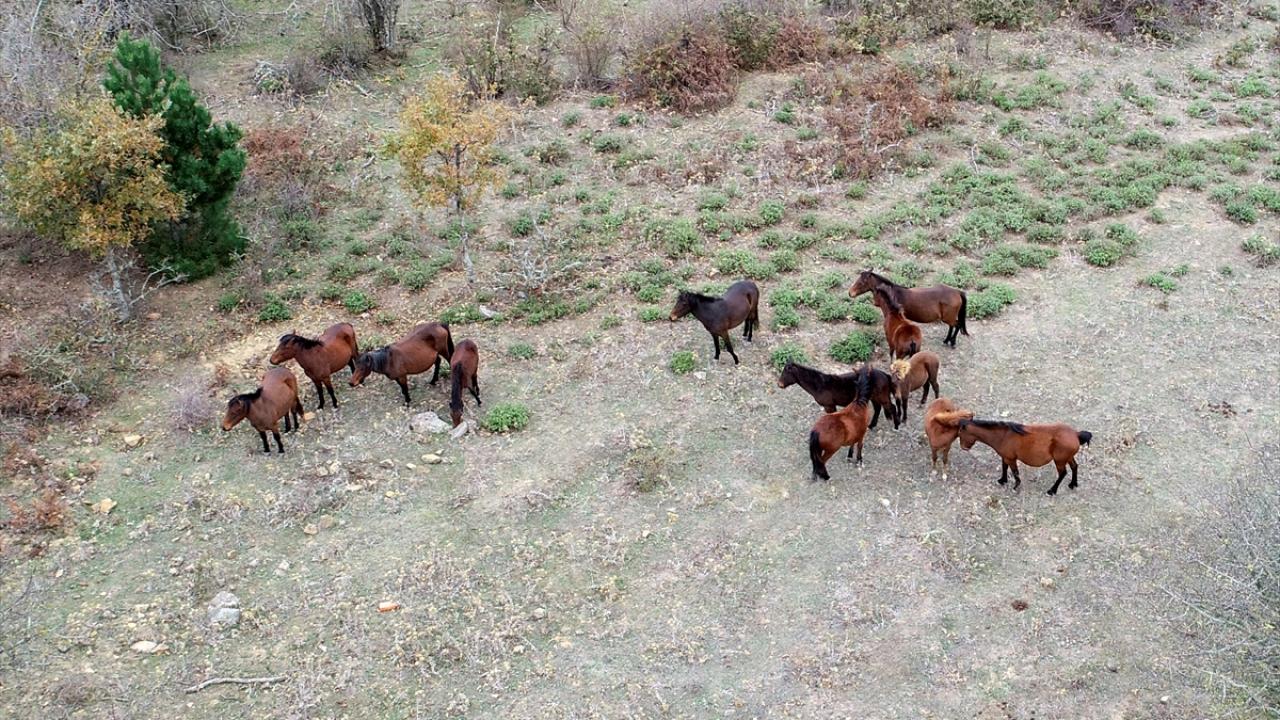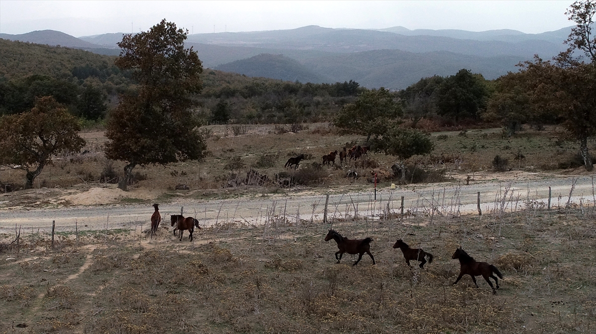 Lapseki`nin kırsal kesimlerindeki mera ve ağaçlık alanlarda yaşayan yılkı atları, 10-15 attan oluşan gruplar halinde yaşamlarını sürdürüyor.