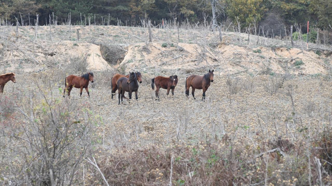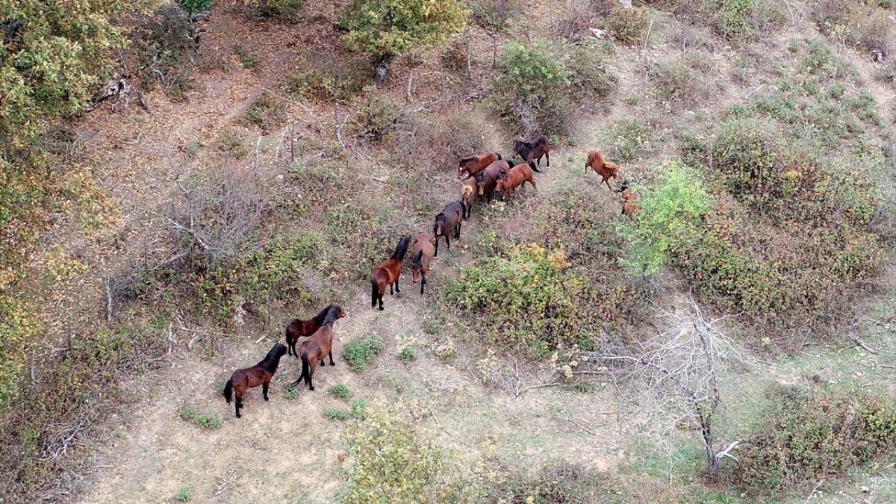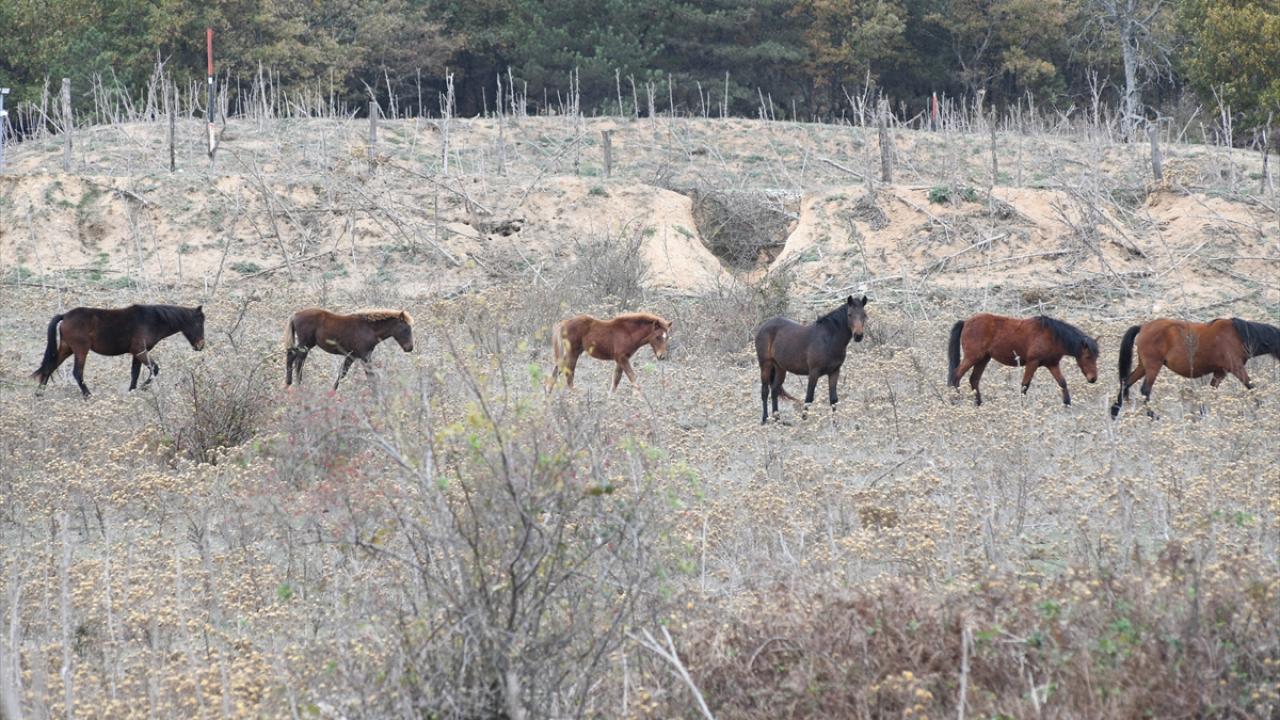 Lapseki`nin kırsal kesimlerindeki mera ve ağaçlık alanlarda yaşayan yılkı atları, 10-15 attan oluşan gruplar halinde yaşamlarını sürdürüyor.