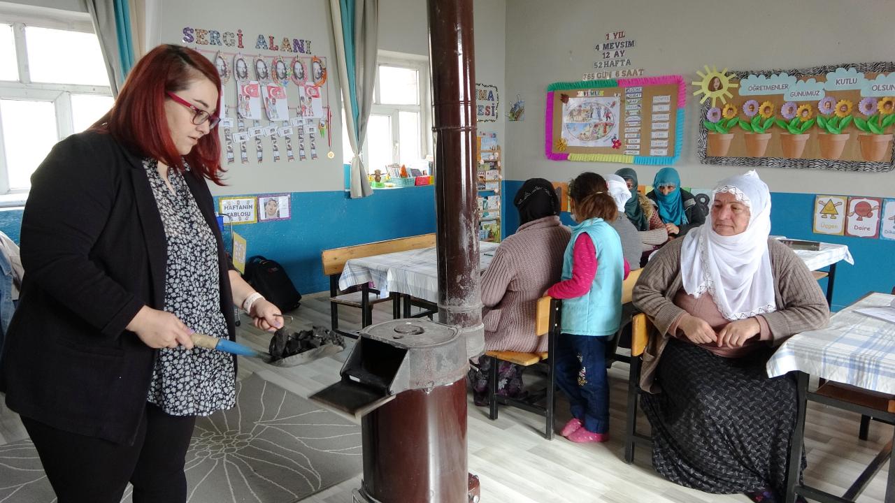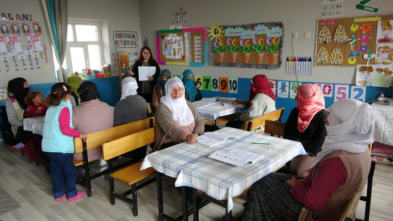 Muş’ta kendi imkanlarıyla köy okulunun tadilat ve onarımını yaptırarak modern bir sınıf oluşturan fedakar öğretmen Canan Sakal, aynı sırada ders verdiği veli ve öğrencilere okuma-yazma öğretiyor.