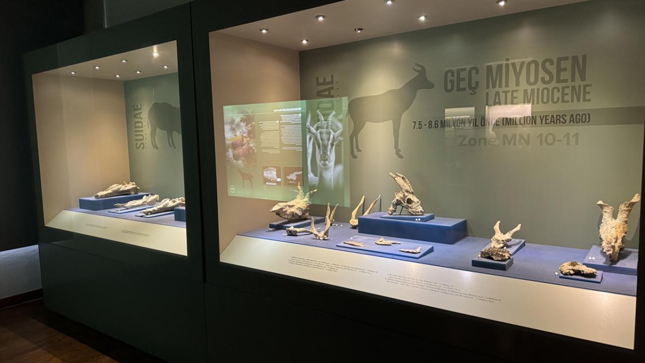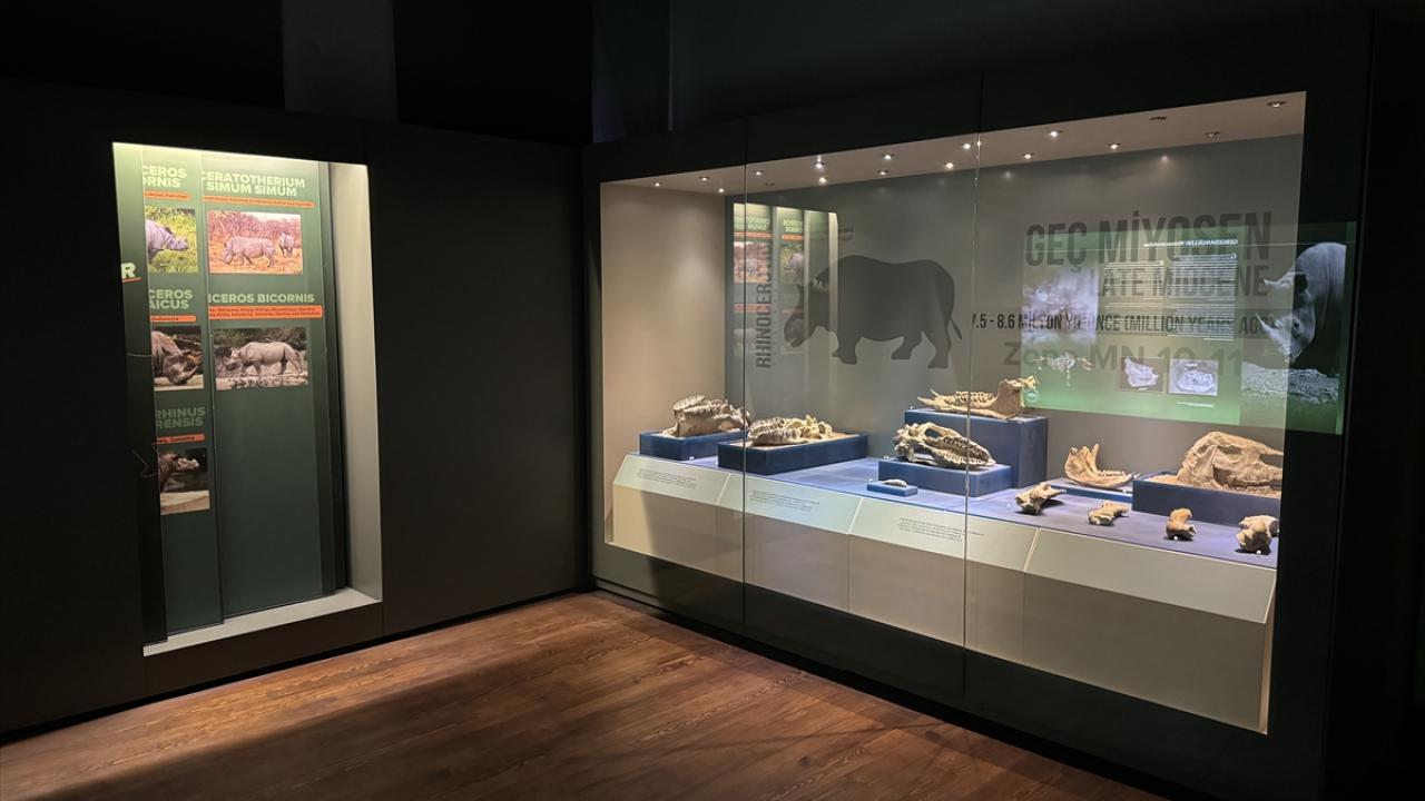 Müzenin doğa tarihi bölümünde 8,5 milyon yıllık fosillerin sergilendiğini dile getiren Can, "Omurgalı hayvanlara ait fosiller faunal çeşitlilik açısından dünyaca bilinirliğe sahiptir. Zürafagiller, gergedangiller, kılıç dişli kaplan gibi oldukça dikkat çekici fosiller sergilenmekte." dedi.