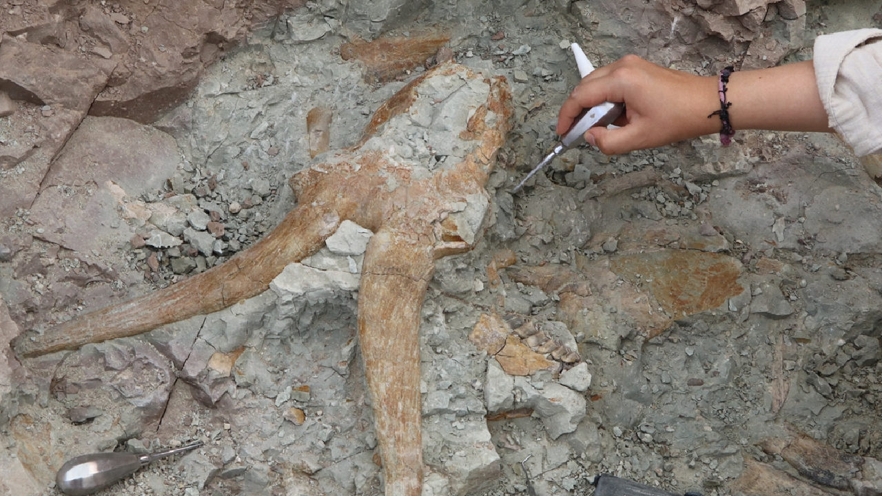 "Hipparion dediğimiz atların iki türüne ait hem uzun vücut kemik parçaları hem kafa parçaları çıkarılıyor. Gergedanlardan iki yavru gergedan kafatasını çıkardık. Yine bizim hortumlular dediğimiz günümüzün fillerinin atalarından türlere ait iskeletler, bizon benzeri büyükbaş boynuzlularla ilgili fosiller, zürafalarla ilgili buluntular, vücut iskeletleri bol miktarda çıktı. Onun dışında dağ keçilerine benzeyen türlere ait fosillerimiz var. Daha önceki yıllarda çıkan fosillerin devamı niteliğinde fosiller geliyor. Bunların hepsi 8,5 ile 7 milyon yıl arasında yaşamış türler. Bütün bu türler, bir katastrofik olay diyoruz, bir felaket sonrası kitle halinde ölen hayvan türlerine ait fosiller. O nedenle de bütün iskelet olarak değil de biraz karışık olarak birbirlerinin üstünde farklı türlerle ilgili buluntular şeklinde ele geçiyor ve aslında hem dünyanın hem ülkemizin en zengin tür çeşitliliğine sahip bir alan burası. 43 ayrı türümüz var, onun üzerinde hayvanlarda ailelere ait dediğimiz gruplar var. 43 türün içerisinde yırtıcılar, çift tırnaklılar, tek tırnaklılar var. Bugüne kadar toplan 4 bin 100 civarında fosil var şu anda. Bu tabii ki tanımlanabilir olanlar. Bir de bizim numarasız olarak elde ettiğimiz fosiller var. Yani 5 binin üzerinde fosilimiz var burada aslında."