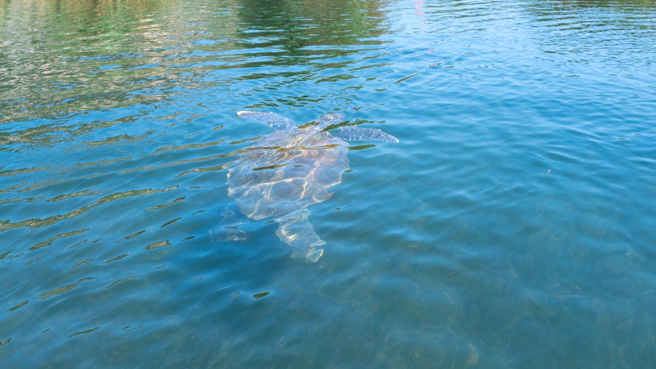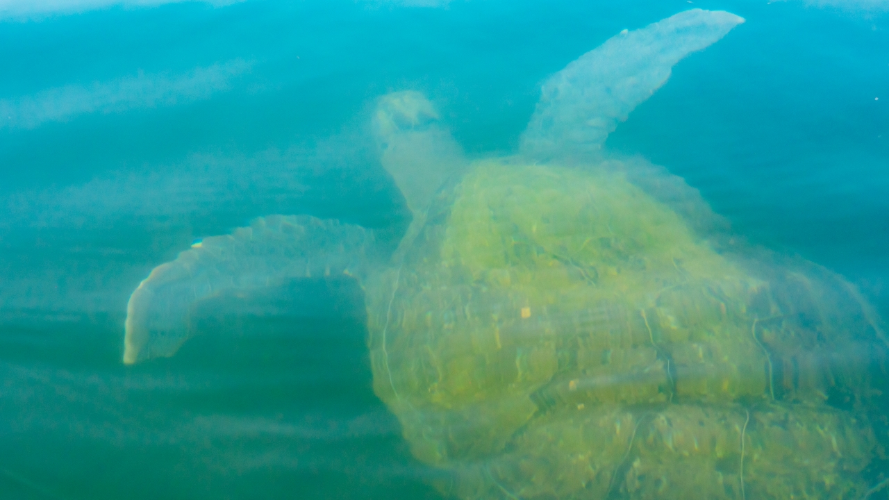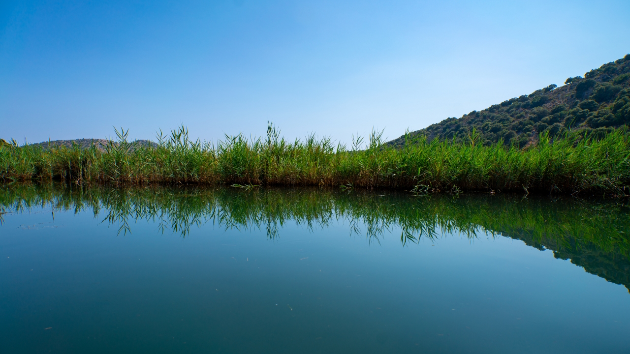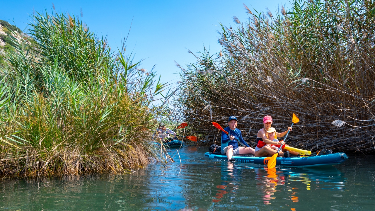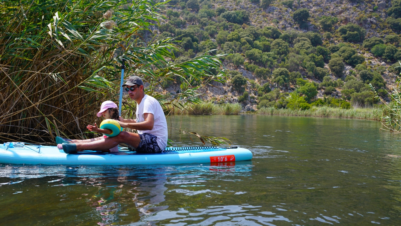 Sazlıklar arasında ortalama bir saat kürek çeken kanoculara ise zaman zaman yanlarında beliren caretta türü kaplumbağalar eşlik ediyor.