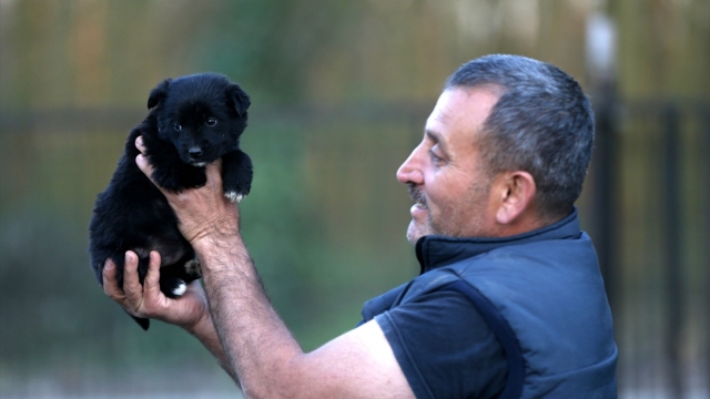 Tek patisi olmayan yavru köpeğe ailece özenle bakıyorlar