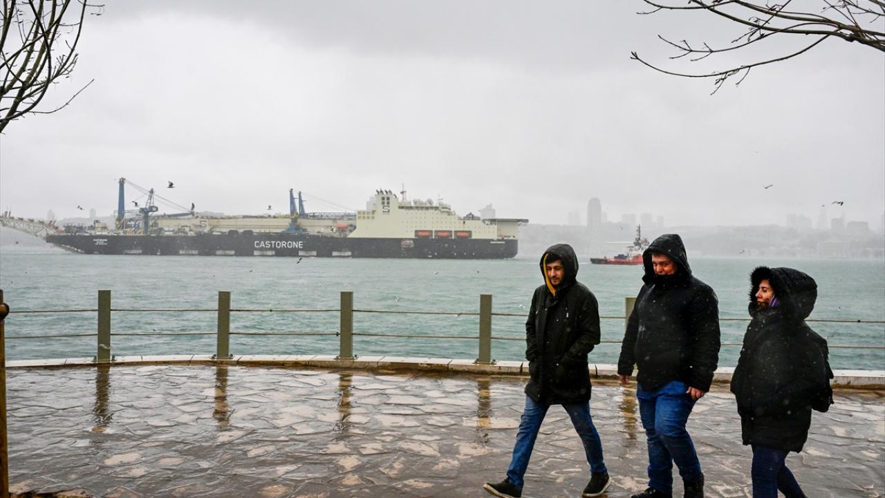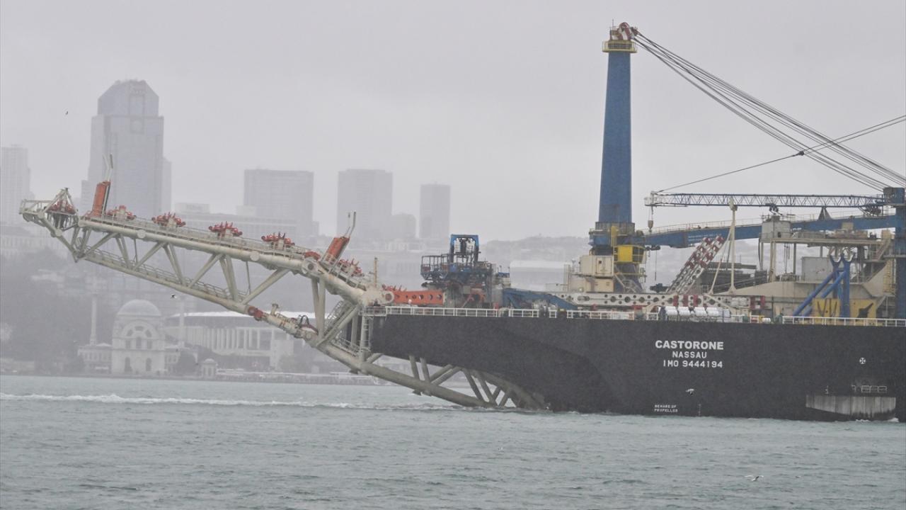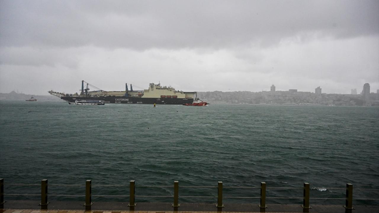 Derin denizde boru indirme gemisi Castorone`nin geçişi dolayısıyla İstanbul Boğazı gemi trafiği, geçici olarak çift yönde askıya alındı.