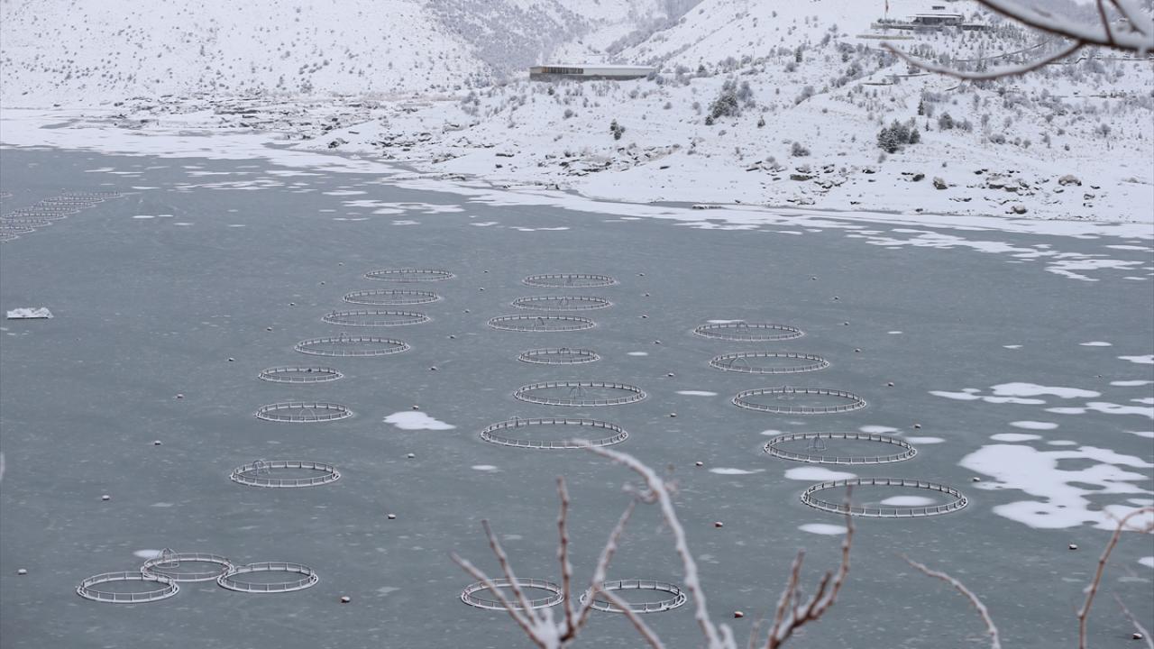 Doğal güzelliğiyle her mevsim özellikle yerli turistlerin ilgi gösterdiği barajın kıyılarındaki yüzen adalar, kar yağışı ve hava sıcaklığının sıfırın altına düşmesiyle buz tuttu.