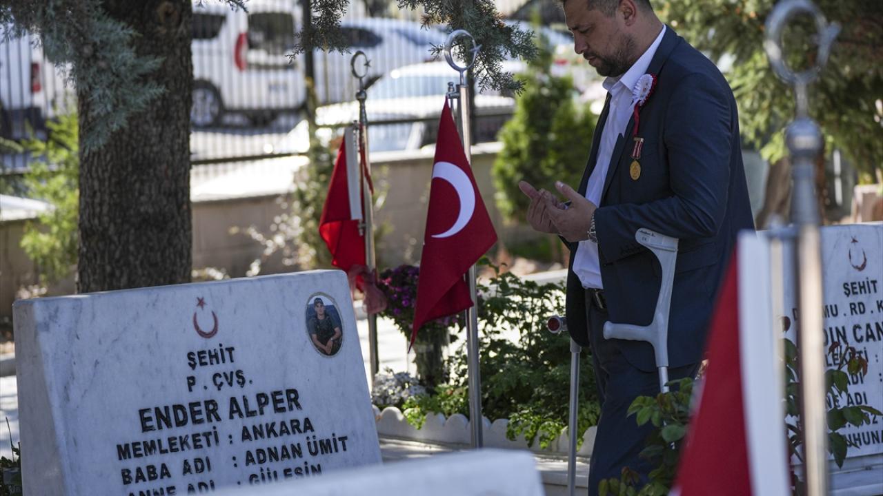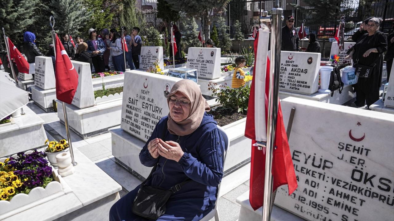 Şehit yakınları ve gaziler, Ramazan Bayramı arifesinde Cebeci Askeri Şehitliği'ni ziyaret etti.