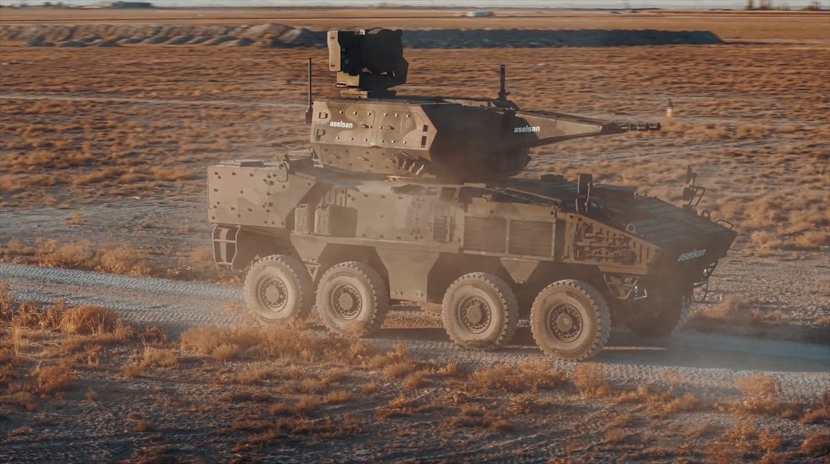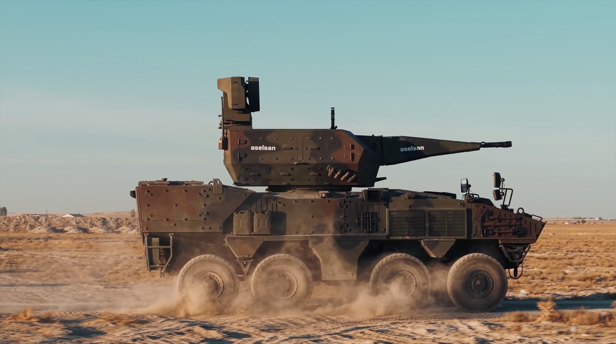 İlk kez Paris Eurosatory 2024 Fuarı`nda sergilenen 8x8 araca entegre KORKUT, atış testlerinde hareket halinde hedef uçağı başarıyla etkisiz hale getirdi.