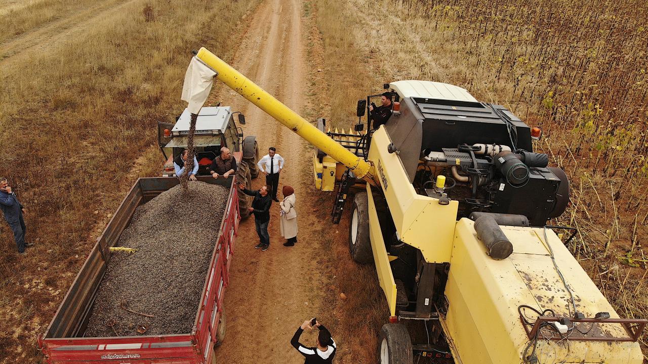 Tarım ve Orman İl Müdürlüğünün teknik desteğiyle deneme amacıyla 600 dekarda çerezlik ayçiçeği ekimi yapan çiftçiler, dekar başına yaklaşık 250 kilogram ürün aldı.
