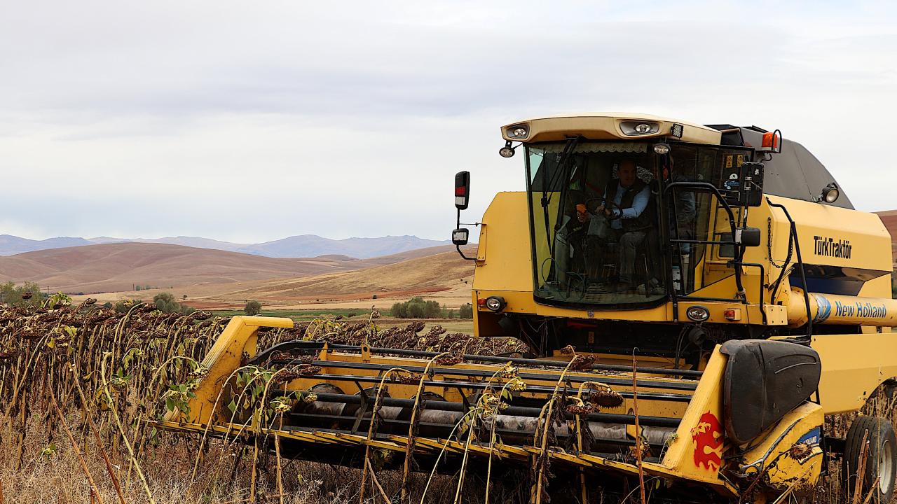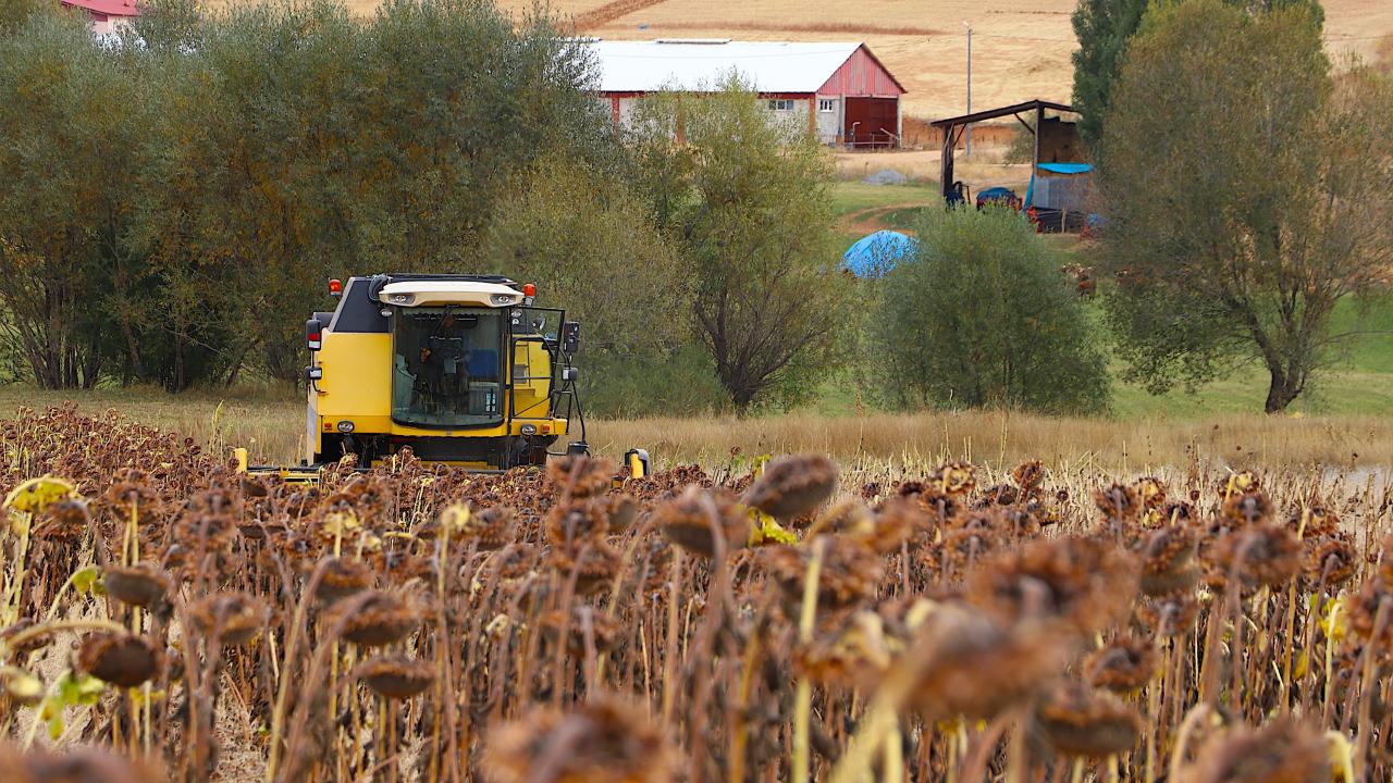 Bayburt`un Sakızlı köyünde çiftçiler, aylardır gece gündüz demeden bakımını yaptıkları ayçiçeklerini hasat ediyor.