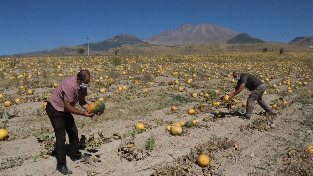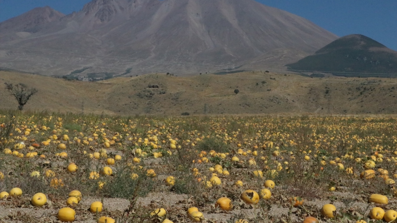 Türkiye'nin kabak çekirdeği ihtiyacının yüzde 35'ini karşılayan Kayseri'de üretilen kabaklar hasat öncesi görselliği ile dikkati çekiyor.