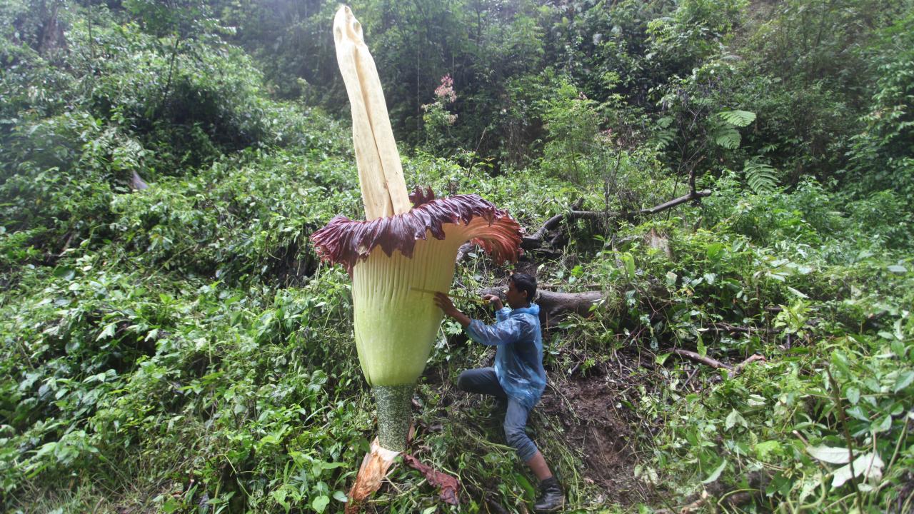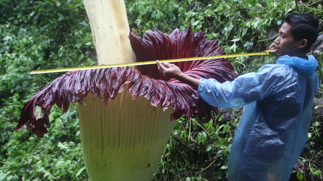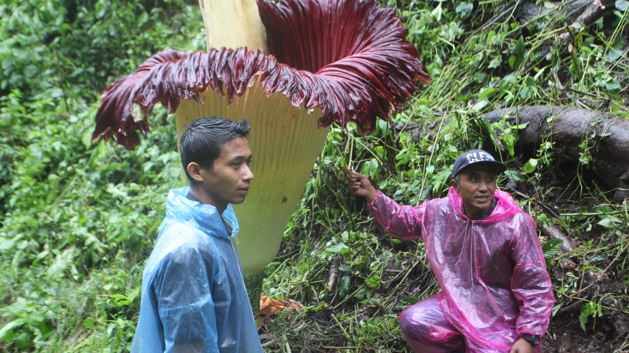 Endonezya'nın Agam kentine bağlı Palupuah Köyü'ndeki ceset çiçeği olarak da bilinen `Rafflesia arnoldii` ziyaretçilerin odağı oldu.