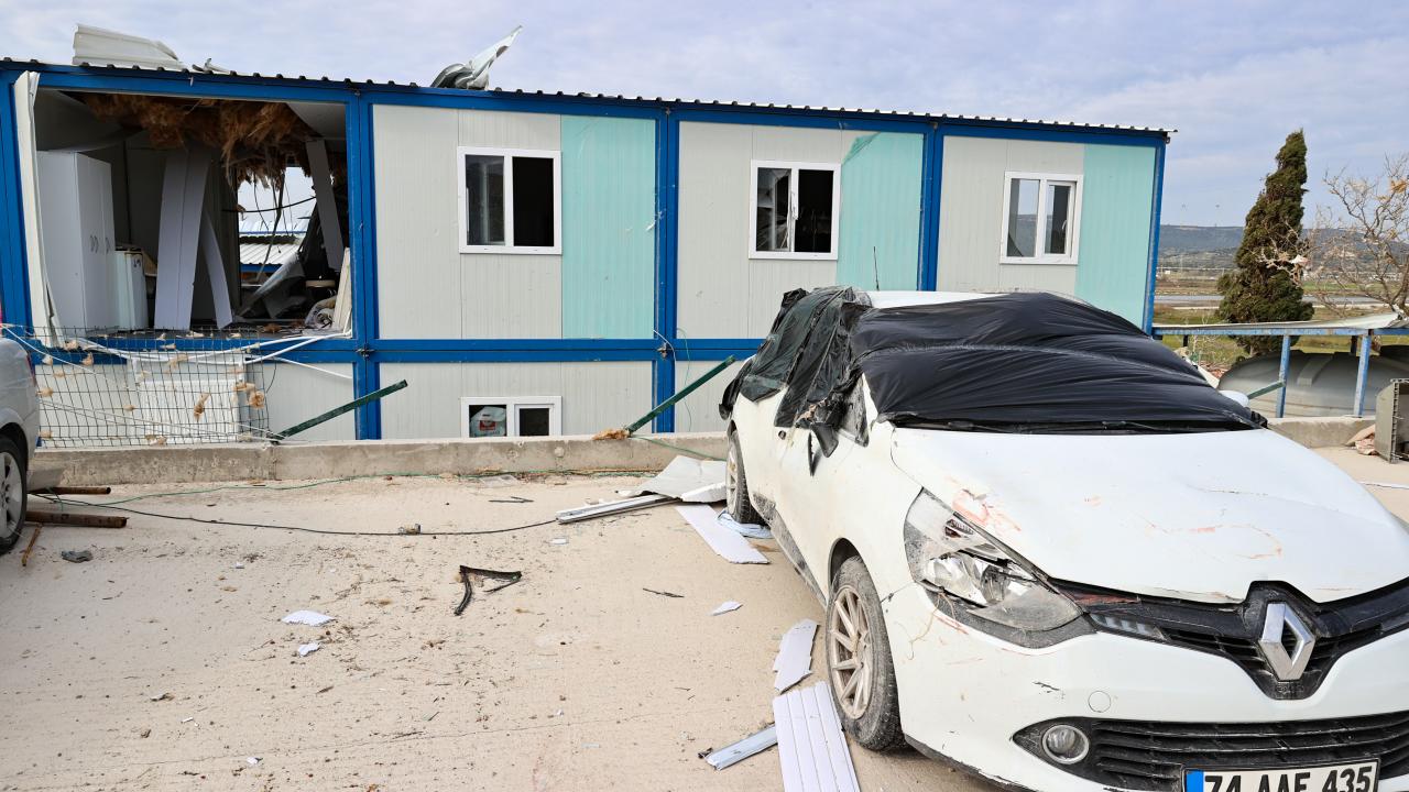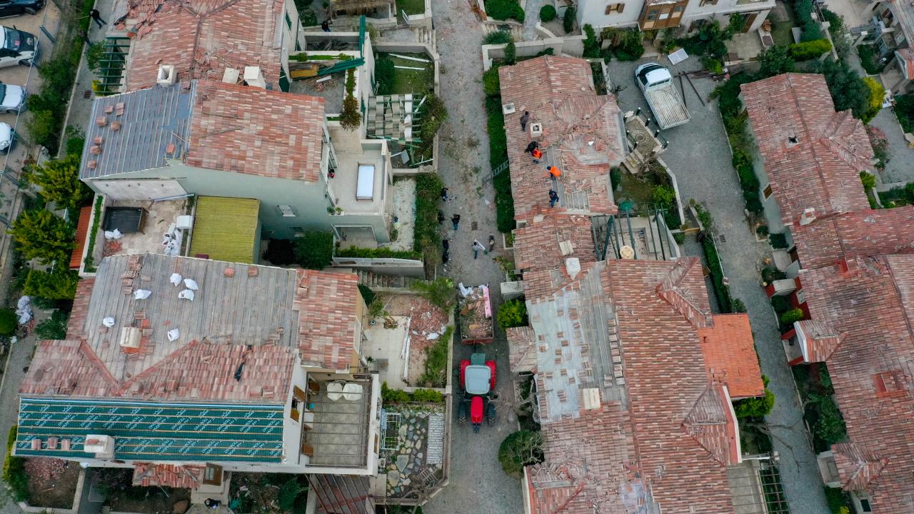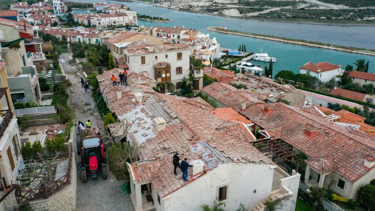 İzmir’in Çeşme ilçesinde Perşembe akşam saatlerinde meydana gelen hortumdan etkilenen evlerde tadilat çalışmaları devam ediyor.