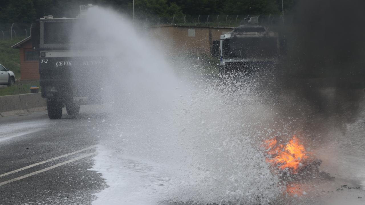 TOMA ile barikata yaklaşım, barikatı dağıtma, yangın söndürme ve süpürme konularında tekamül eğitiminden geçirilen ekipler, TOMA ile sürüş yaptı, yakılan hedeflere su sıktı.