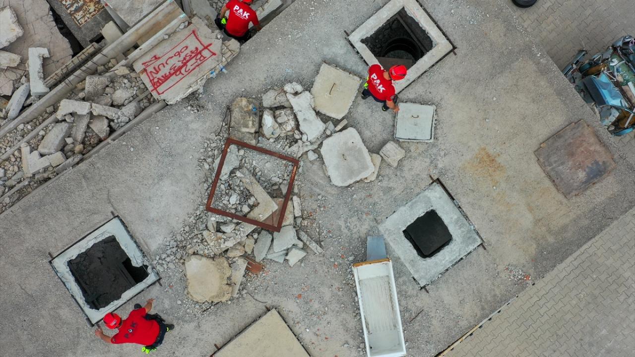 İzmir İl Afet ve Acil Durum Yönetimi Başkanlığının (AFAD) eğitim alanında düzenli tatbikatlar yaparak olası afetlere müdahale yetkinliğini geliştirmeye çalışan PAK timi, tatbikatta enkaz altında kalanlara ulaşılması, kurtarılması, ilk müdahale sürecinde yöntemler ve ekipman kullanımına ilişkin pratikler yapılıyor.