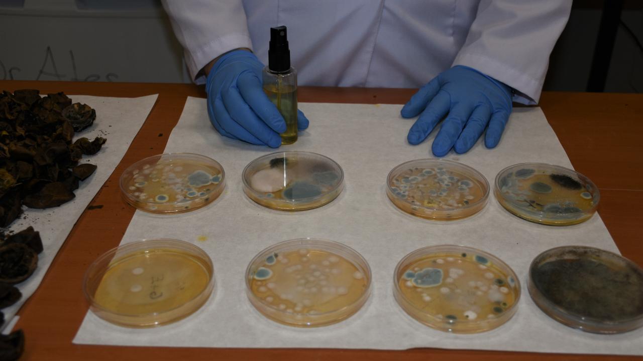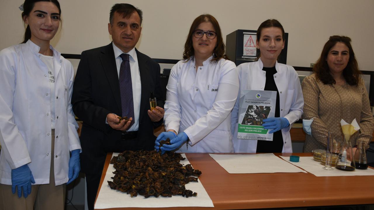 Kırşehir Ahi Evran Üniversitesinin (KAEÜ) pilot uygulamalar kapsamında bölge üreticilerine destek sağlamak amacıyla başlattığı proje ile yeşil ceviz kabuğu atıklarından dezenfektan üretildi.