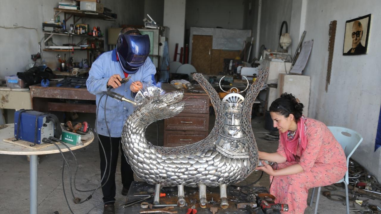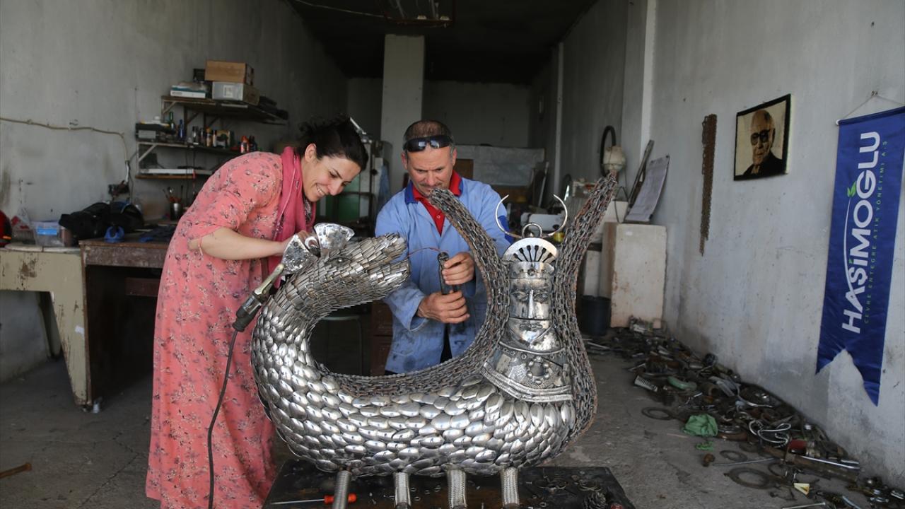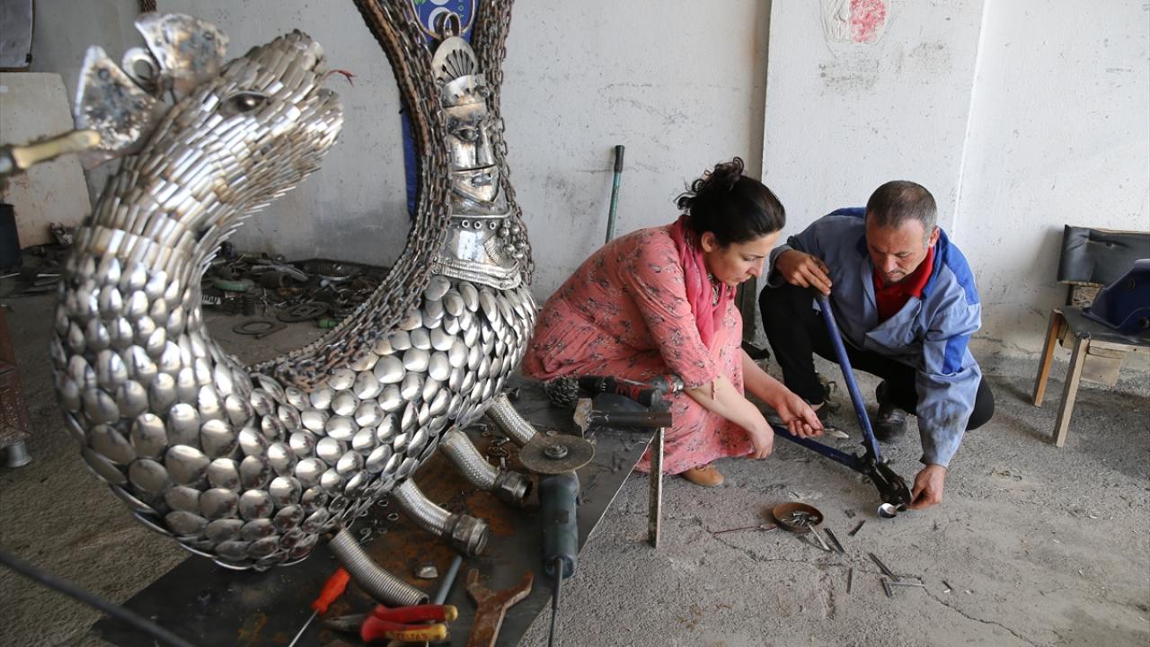 Agrin Çakmak ise eşiyle son dönemde atıklardan heykel yapmaya başladıklarını, güzel eserler ortaya çıktığında bu alana ilgilerinin daha da arttığını belirtti.
