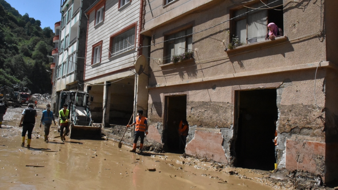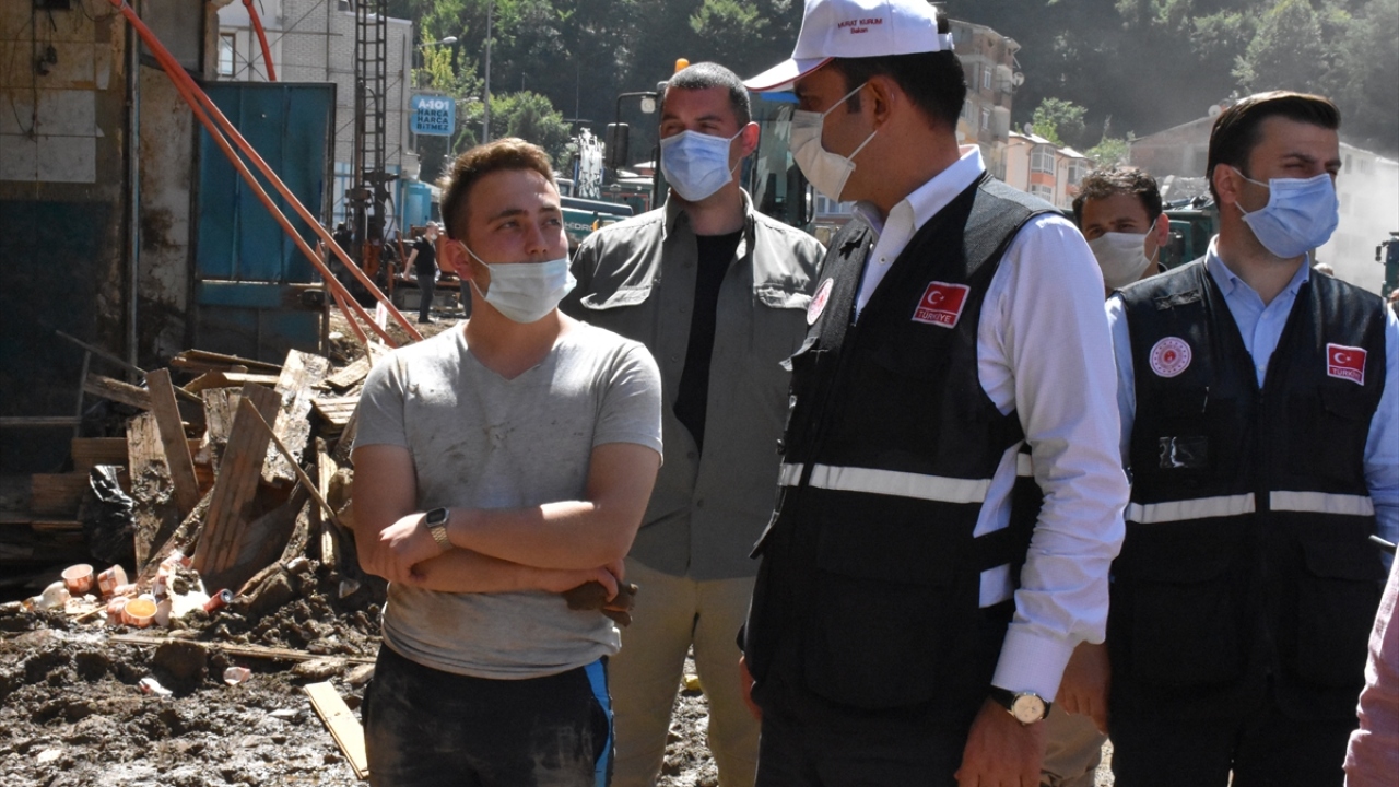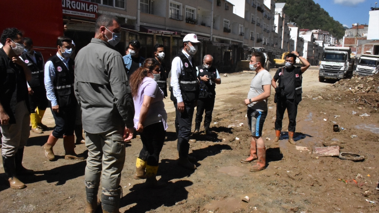 Çevre ve Şehircilik Bakanı Murat Kurum, Dereli'de yürütülen çalışmaları yerinde inceledi. İş yerleri zarar gören esnafı ziyaret eden Kurum, dükkanlarının temizliğini yapan vatandaşların sorun ve taleplerini dinledi.