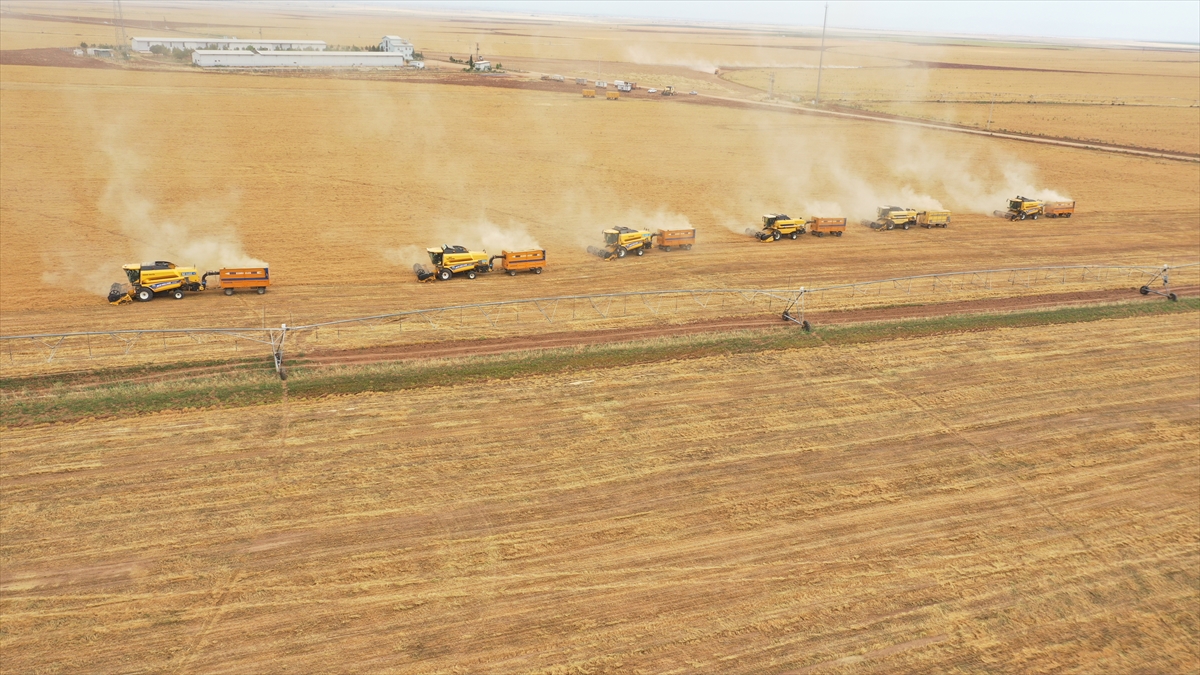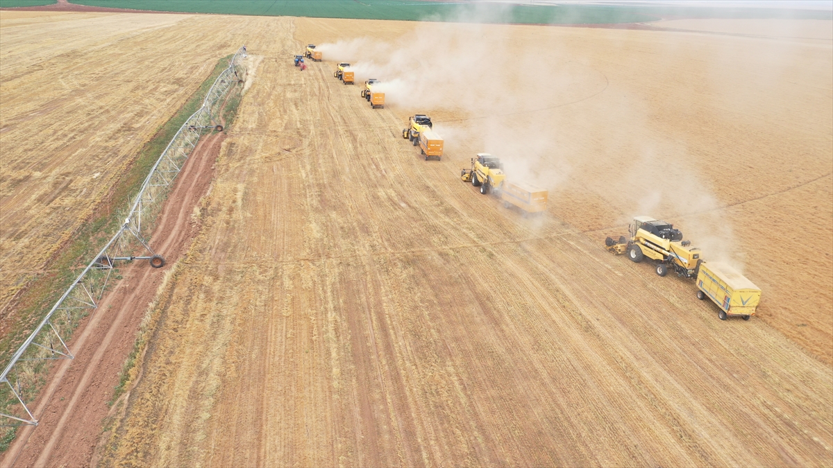 "Hububat deposu" olarak bilinen dev işletmede mayıs ayı sonunda başlayan hasat dönemi, yaklaşık 88 bin futbol sahası büyüklüğündeki alanda 229 biçerdöver, 128 kamyon ve 1200 işçiyle devam ediyor.