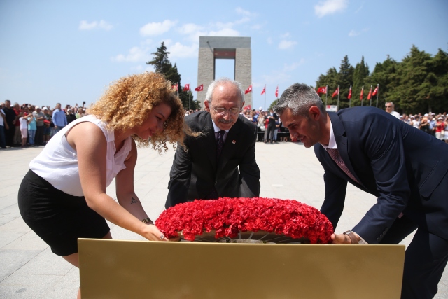 CHP Genel Başkanı Kemal Kılıçdaroğlu, Çanakkale Gelibolu Yarımadası'ndaki Şehitler Abidesi'nde düzenlenen törene katıldı. Anıta çelenk bırakan Kılıçdaroğlu, daha sonra sembolik şehitliğe karanfil bıraktı.