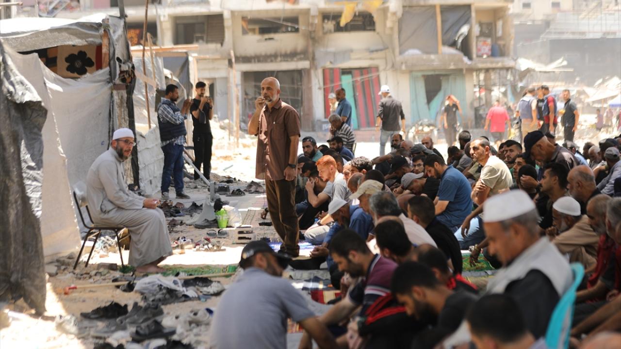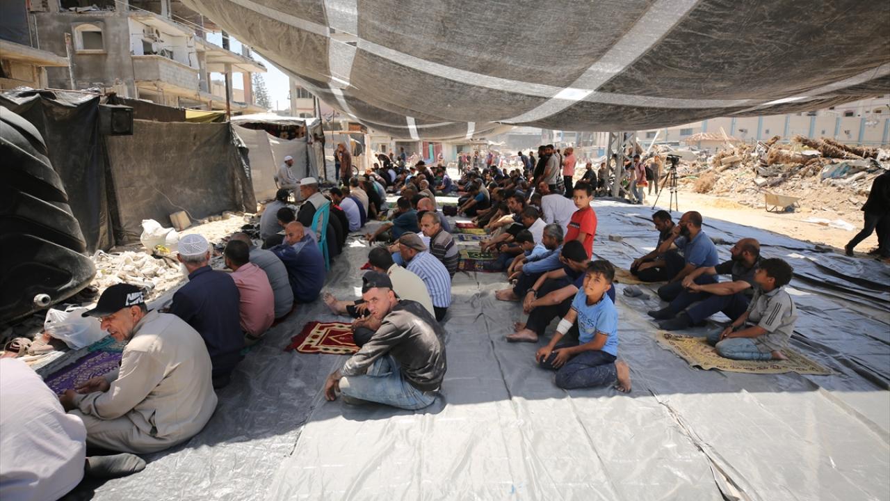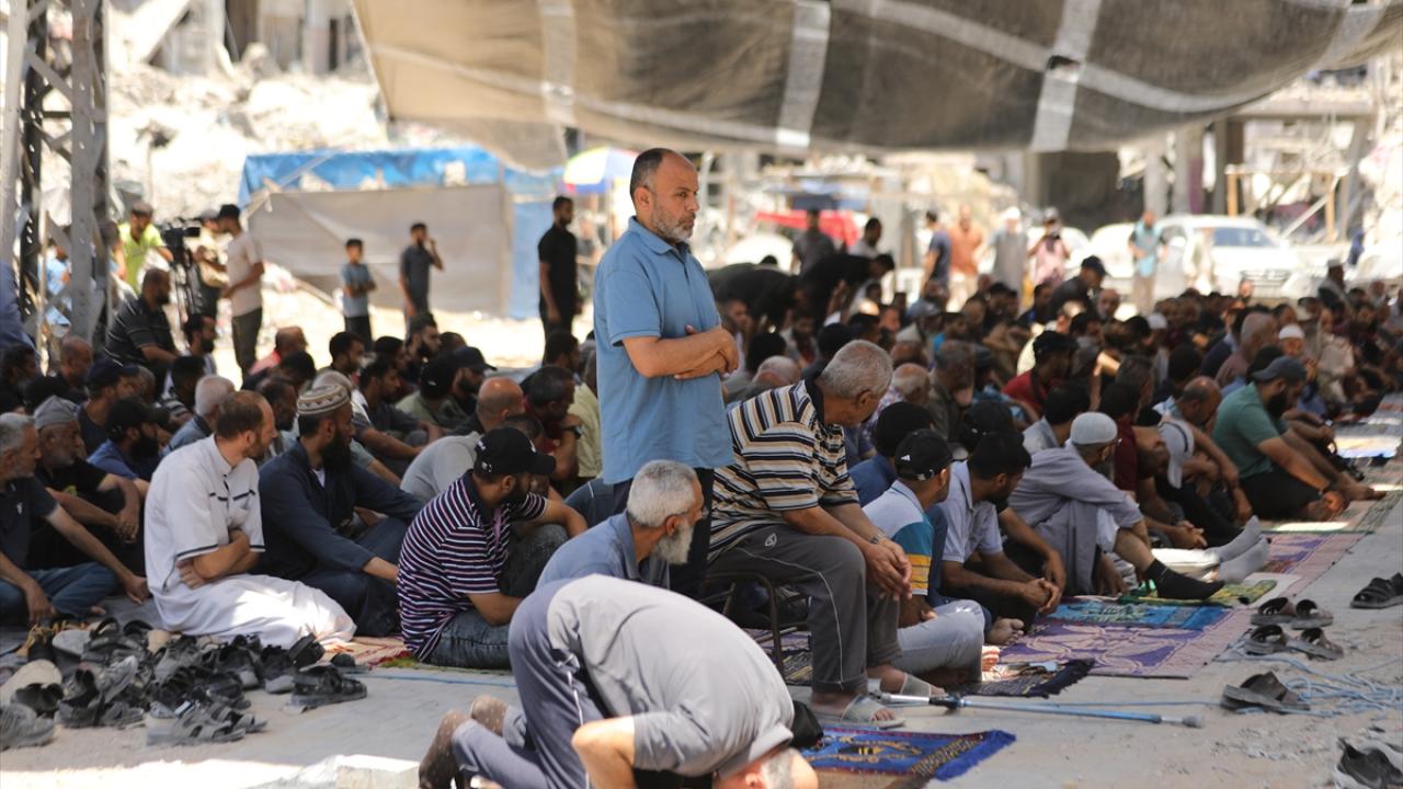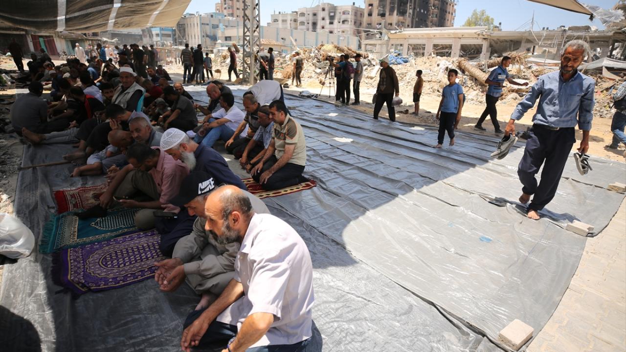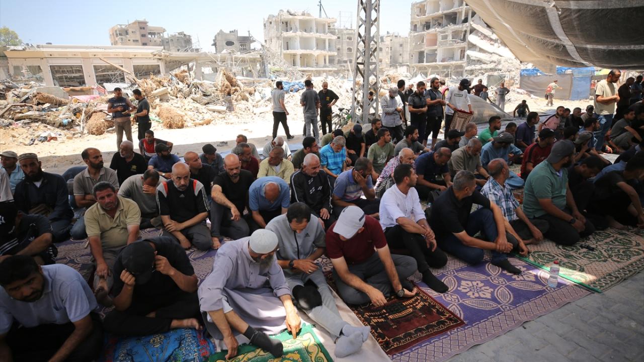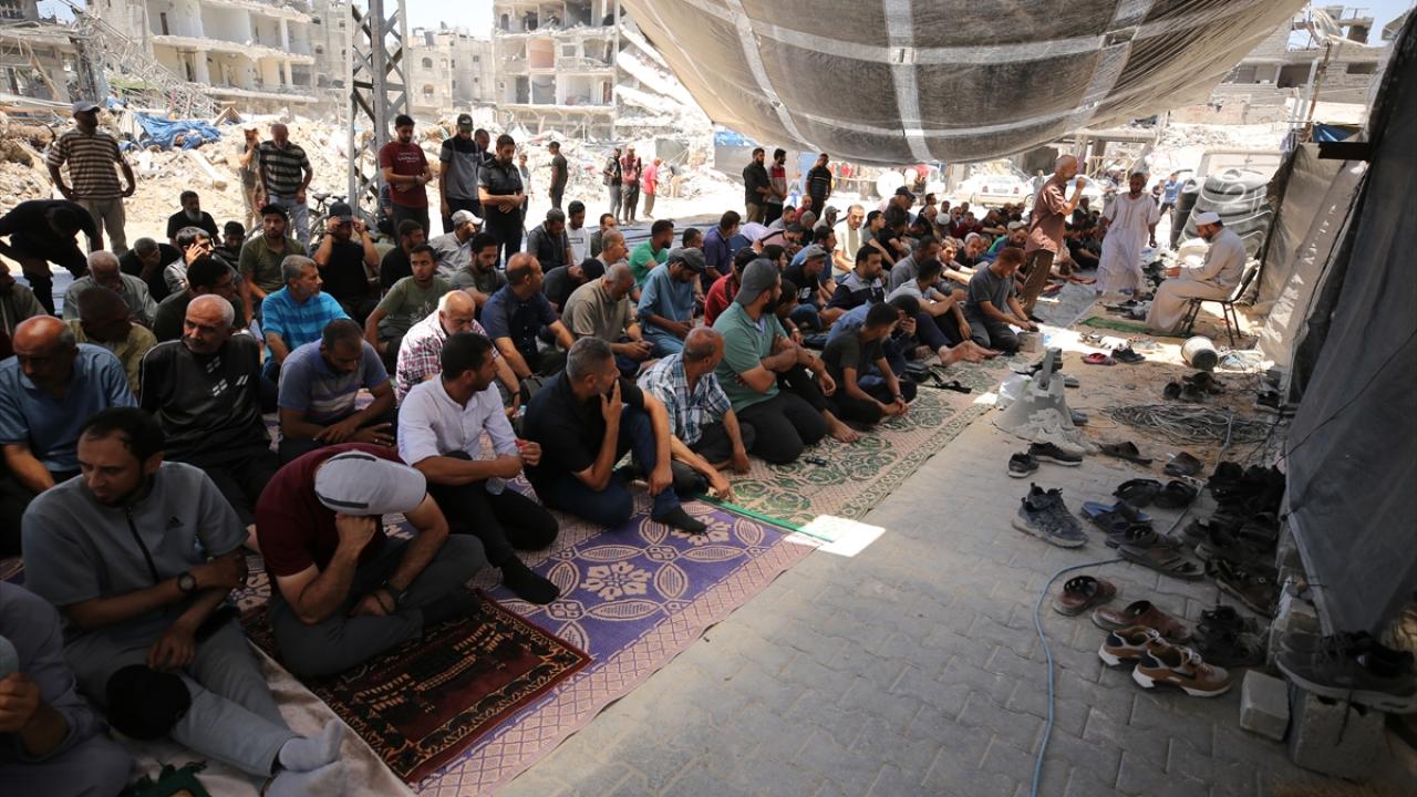 İsrail ordusunun yoğun saldırılarına maruz kalan Gazze'nin kuzeyindeki Cibalya Mülteci Kampı'nda yaşayan Filistinliler, saldırılarda yıkılan binaların arasında cuma namazını kıldı.