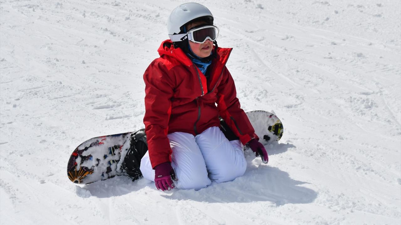 Havanın birçok yerde yavaş yavaş ısındığı ve batı illerinde bazı vatandaşların denize girmeye başladığı son günlerde, hava sıcaklığının sıfırın altında seyrettiği Cıbıltepe`de turistler kayak ve snowboard yapmanın keyfini yaşıyor.