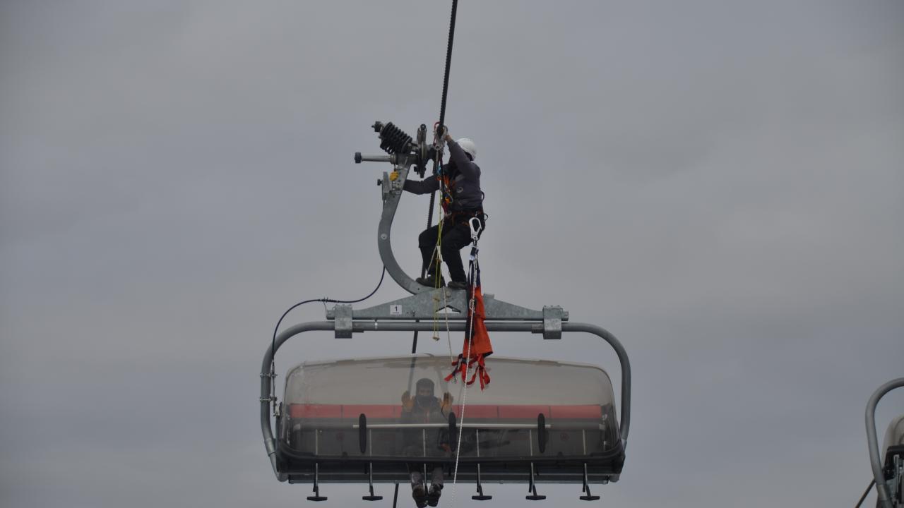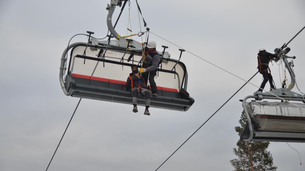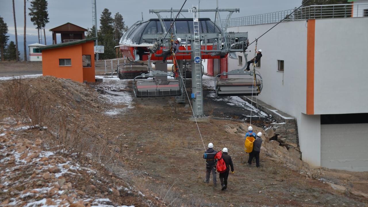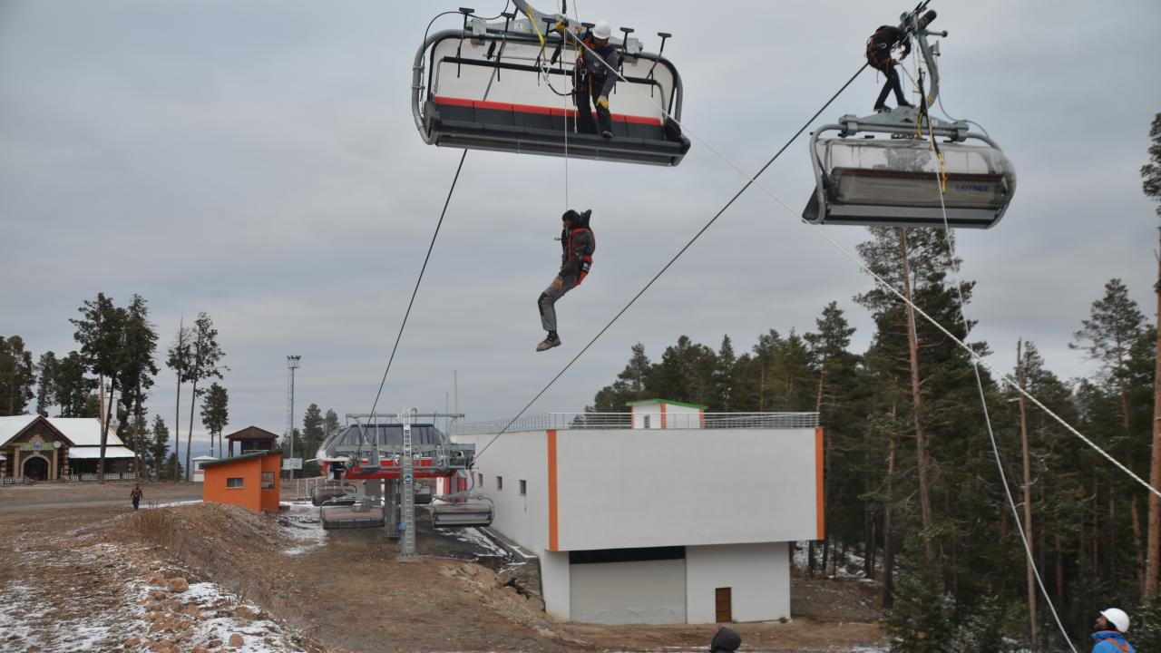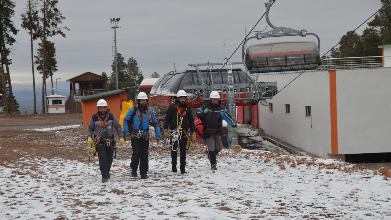 Olası mahsur kalma olaylarına karşı tatbikat yapılan kayak merkezinde bulunan tesisler de sezon öncesi hazırlıklarını bitirdi.