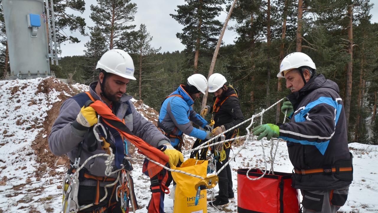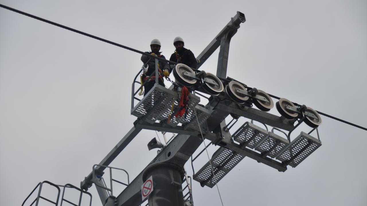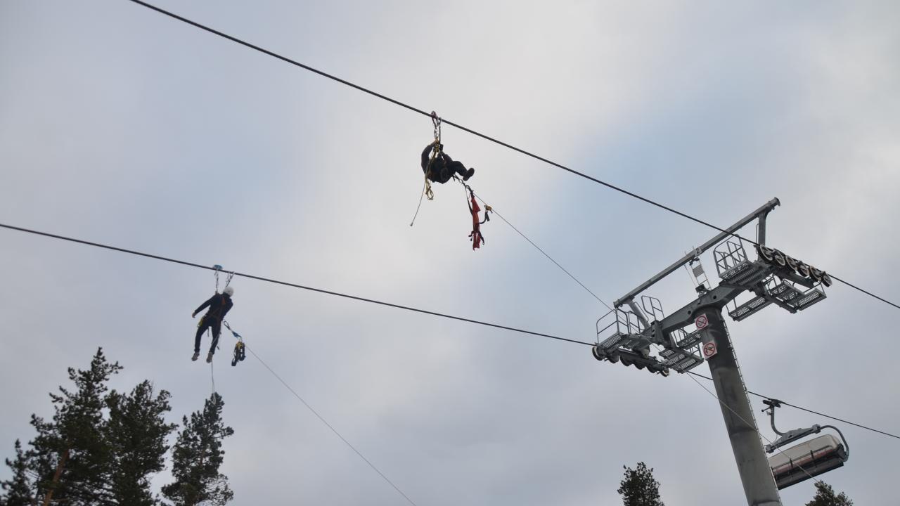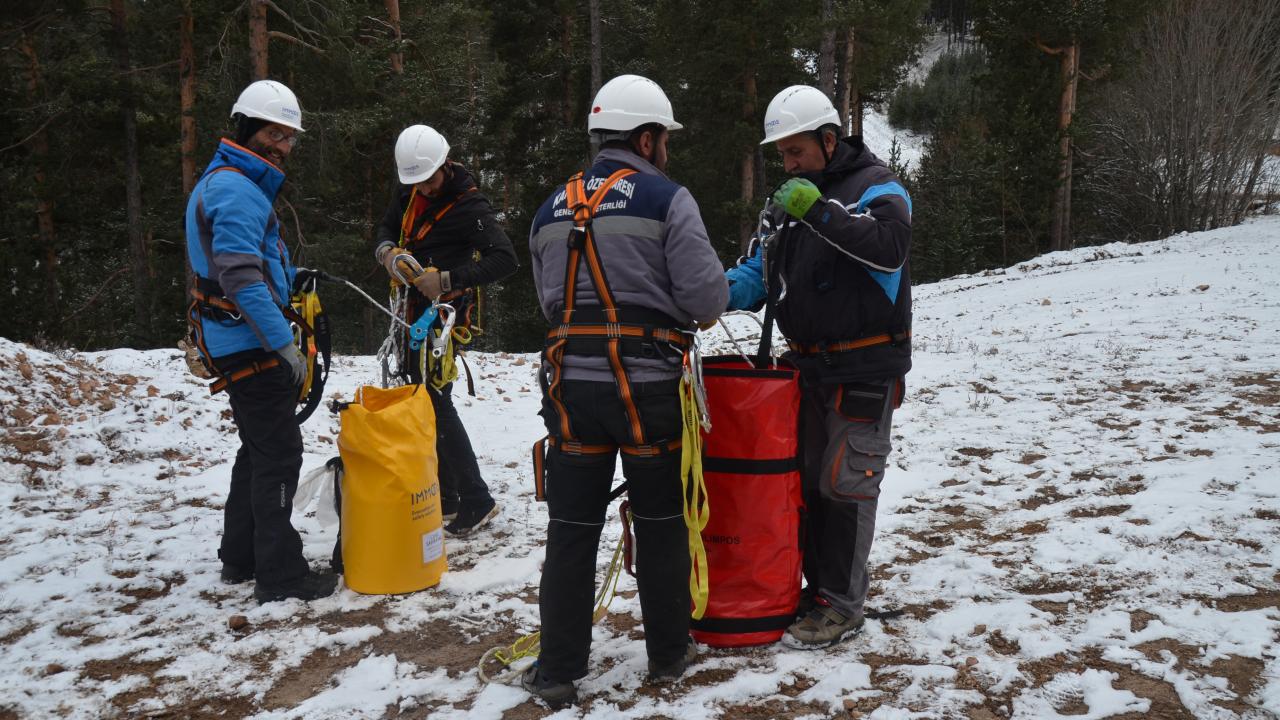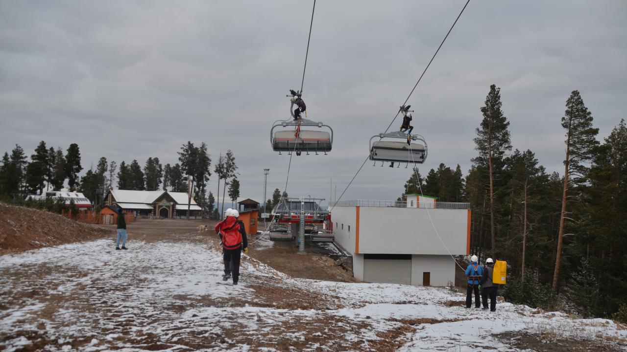 Olası mahsur kalma olaylarına karşı tatbikat yapılan kayak merkezinde bulunan tesisler de sezon öncesi hazırlıklarını bitirdi.