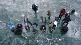 Yüzeyi buzla kaplı Balık Gölü fotoğraf tutkunlarını ağırlıyor