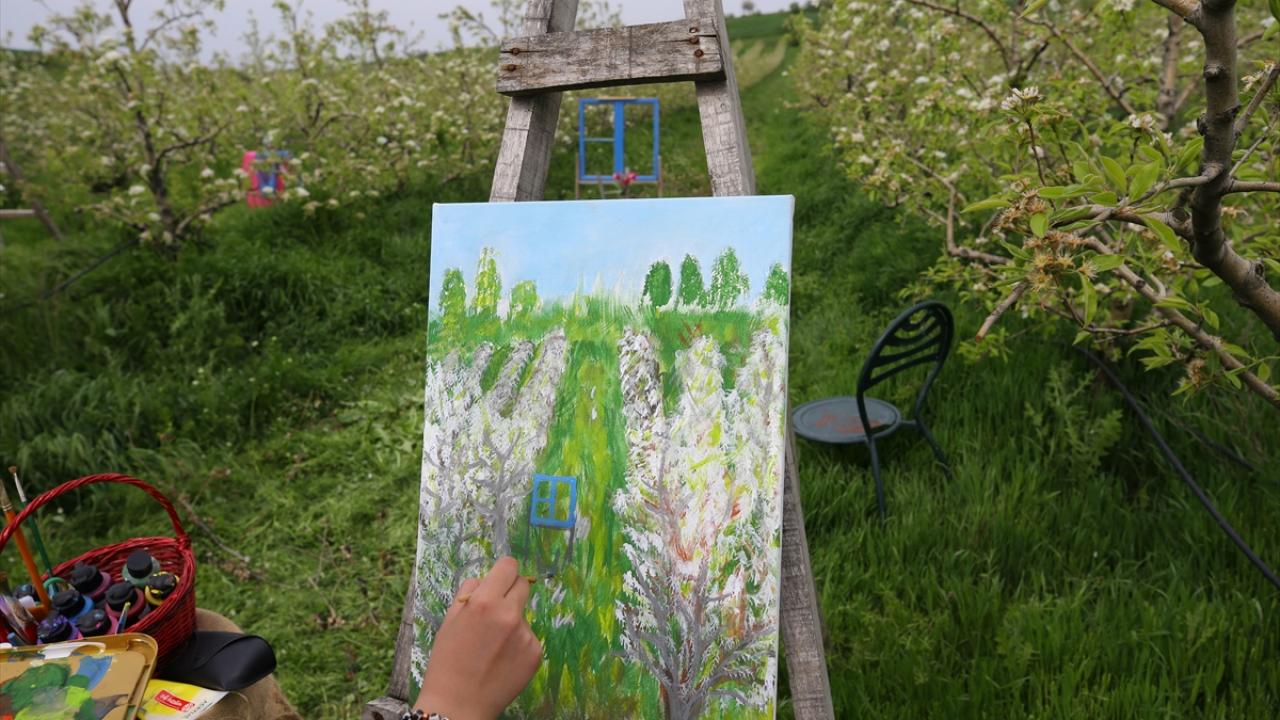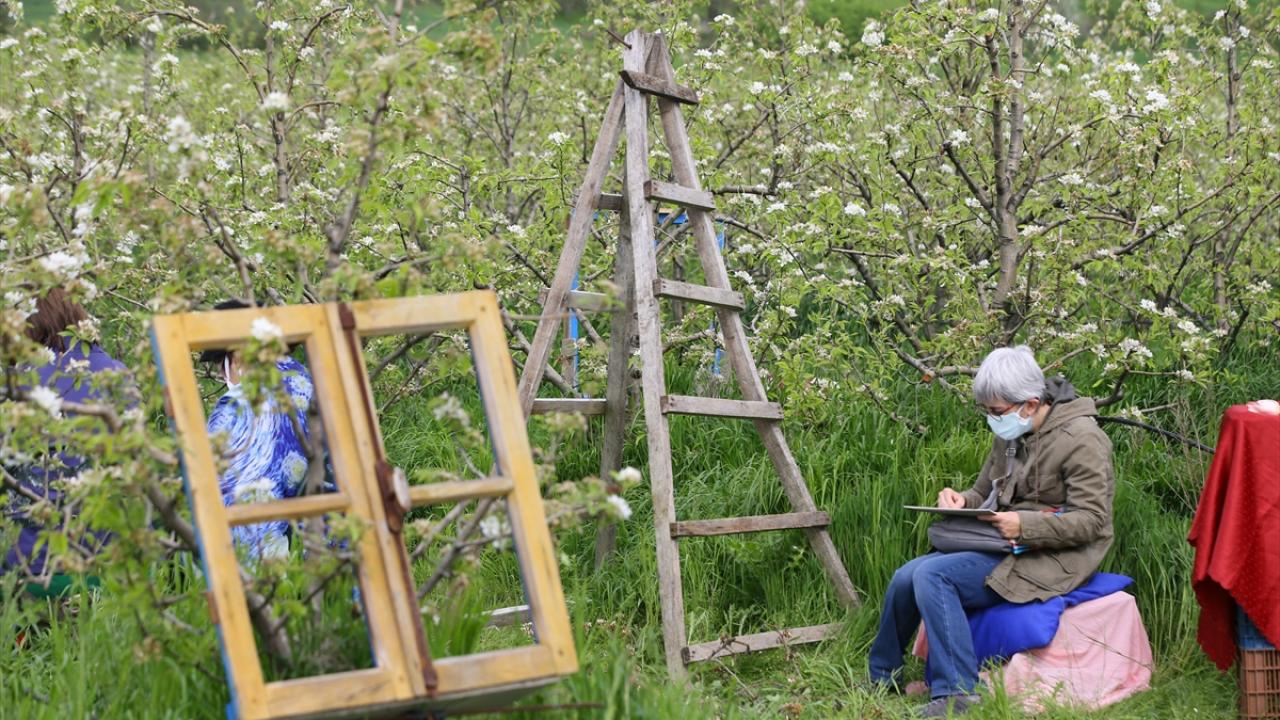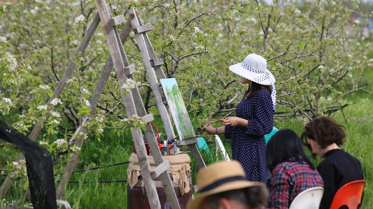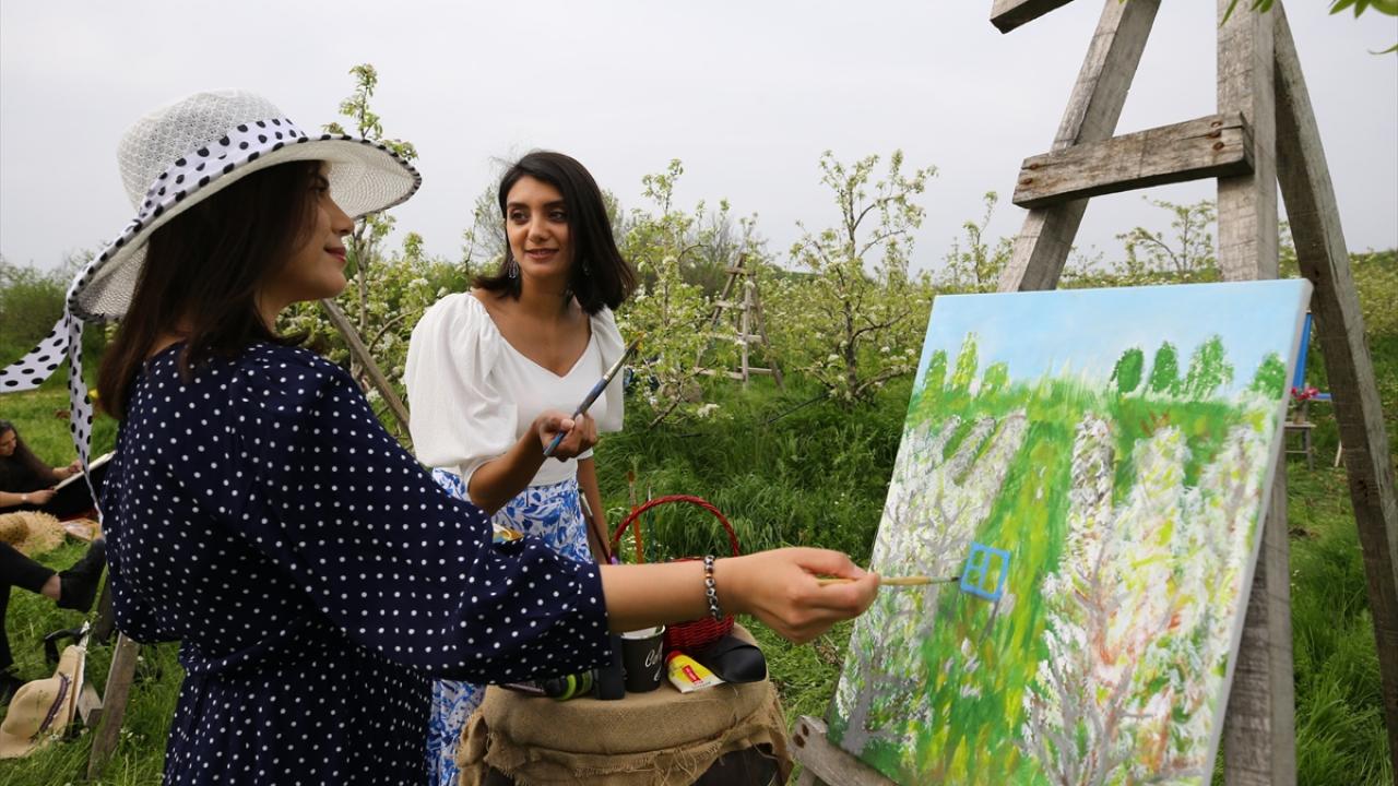 Çiçek açan armut bahçeleri ressamlara ilham kaynağı oldu