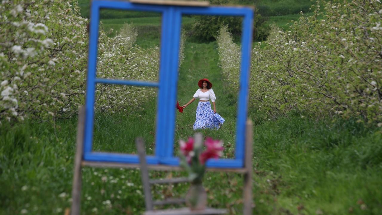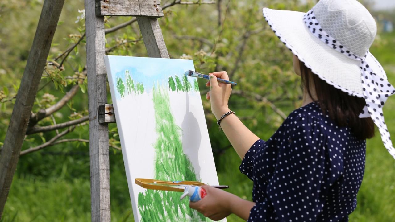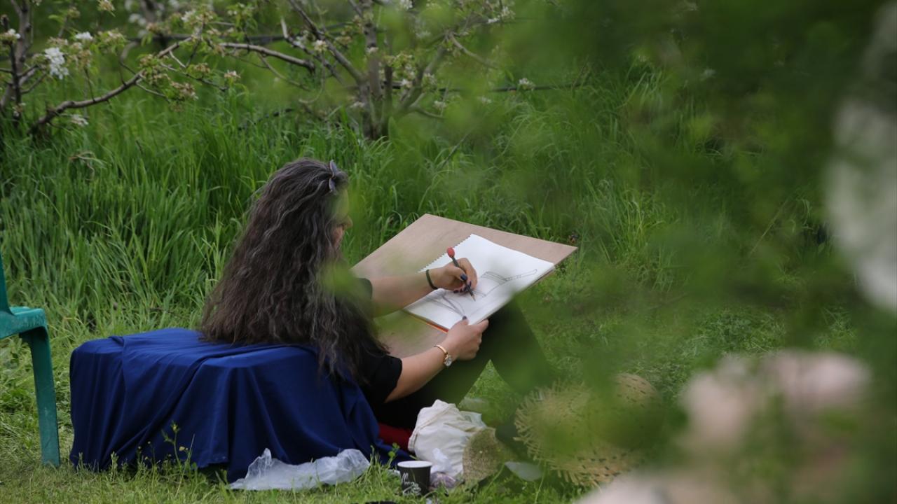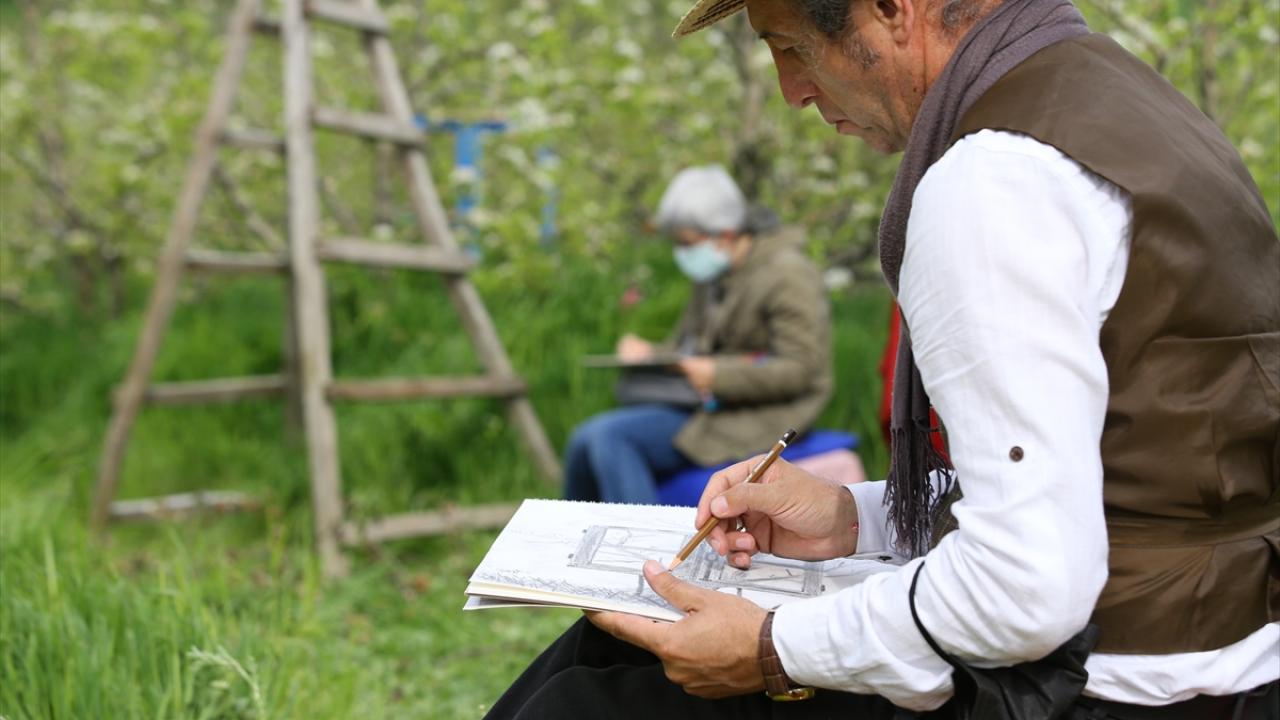 Çiçek açan armut bahçeleri ressamlara ilham kaynağı oldu