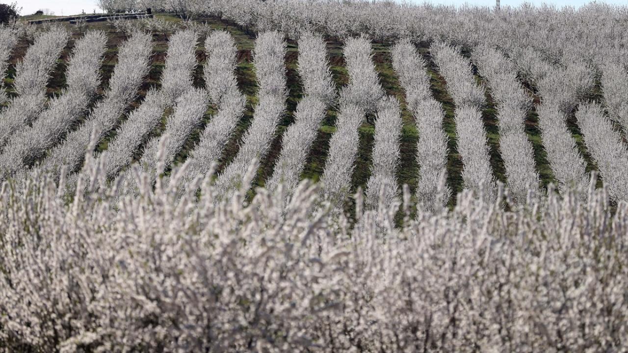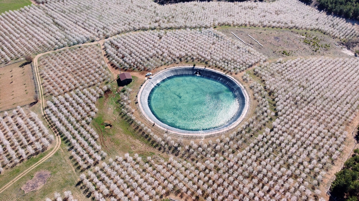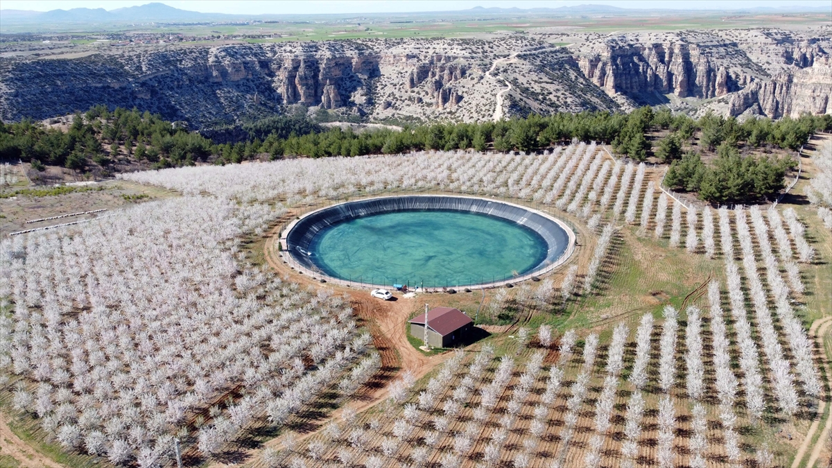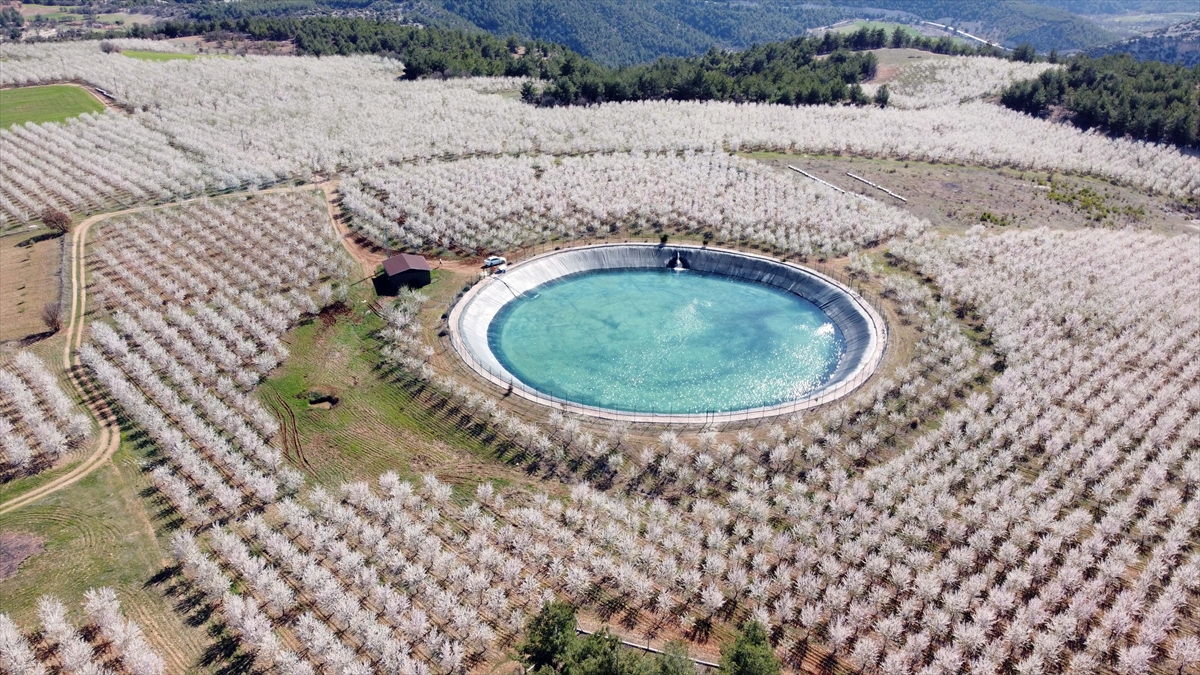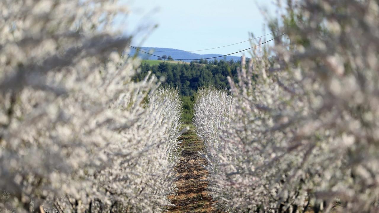 Ulubey Kanyonu`nun eteklerine kadar uzanan badem bahçelerinde güzel görüntü oluştu.