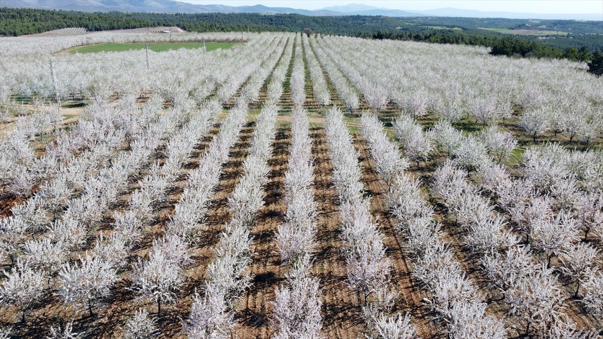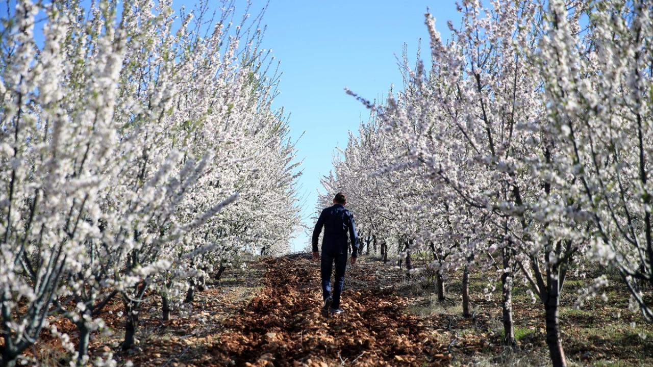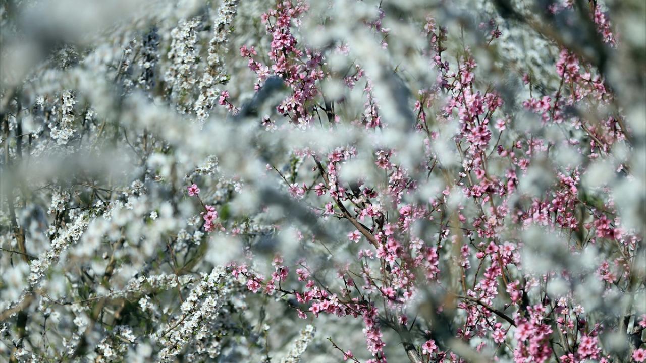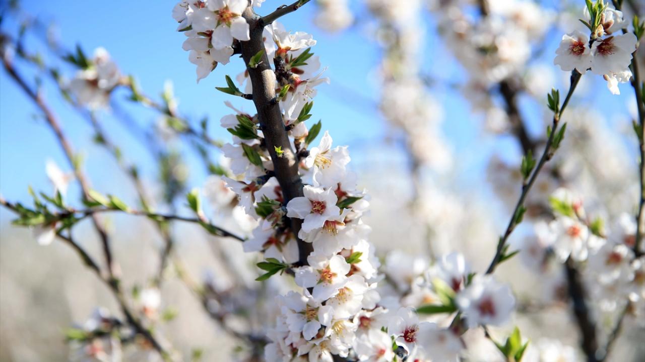 Uşak'ta baharın gelmesiyle birlikte kentteki badem ağaçları çiçek açtı.