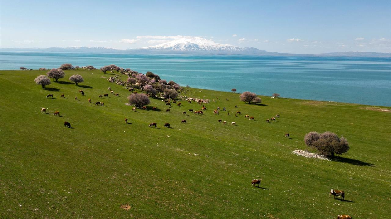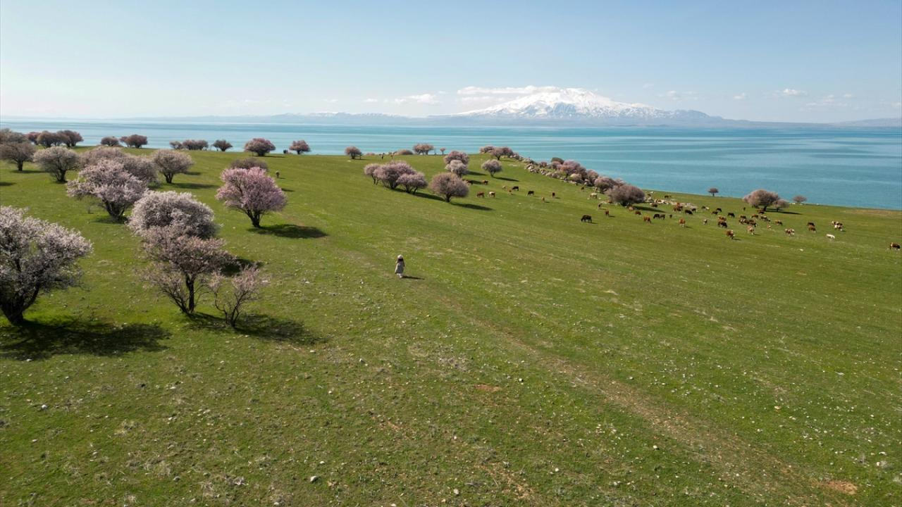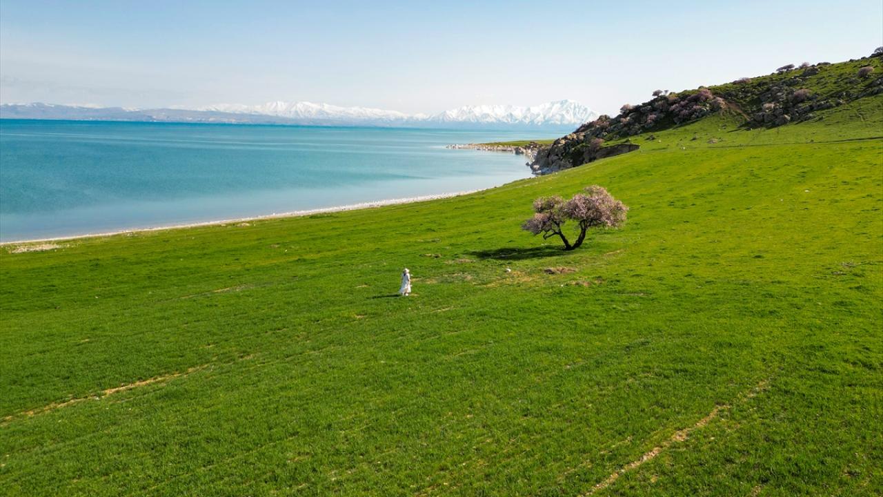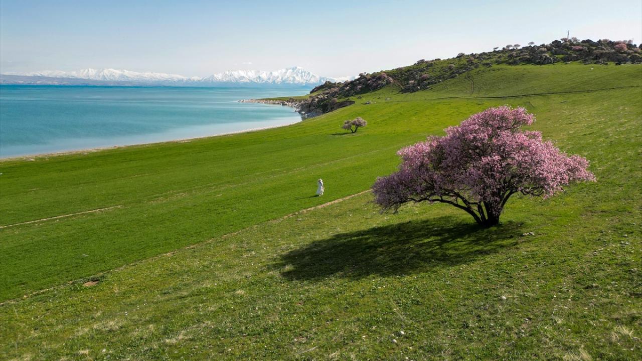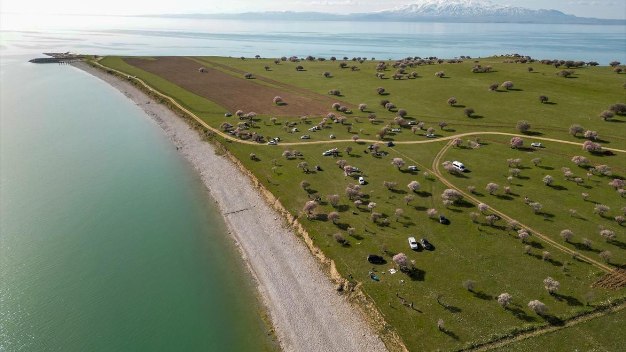 Çiçek açan badem ve kayısı ağaçlarının, Süphan Dağı, Van Gölü`nün ve gökyüzünün maviliğiyle bütünleştiği kıyılar, doğaseverleri ve fotoğraf tutkunlarını cezbediyor.
