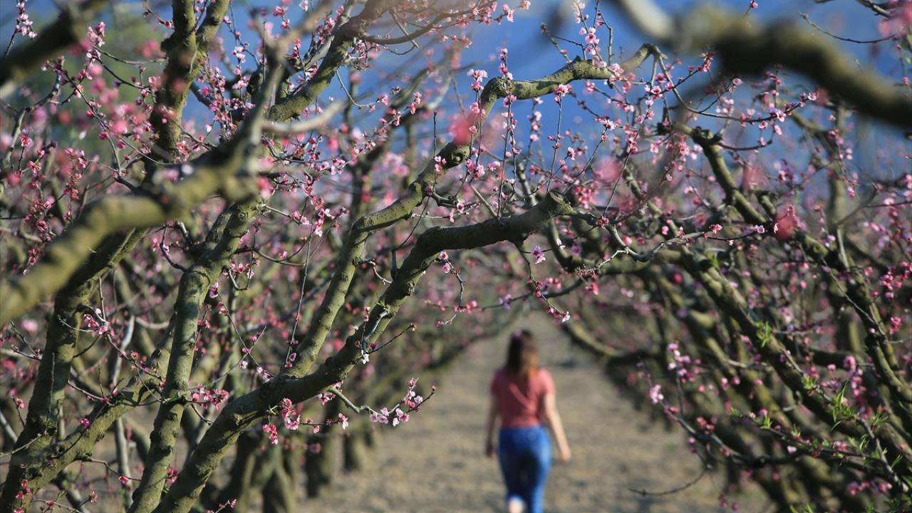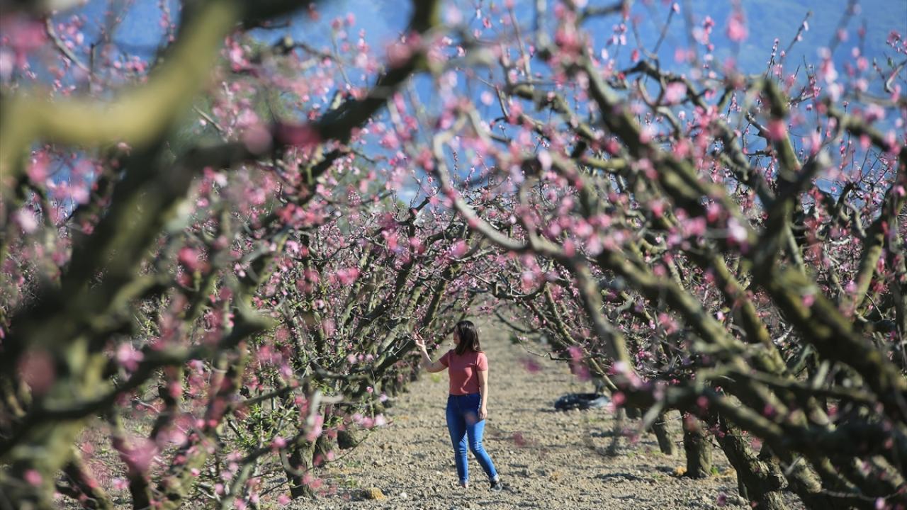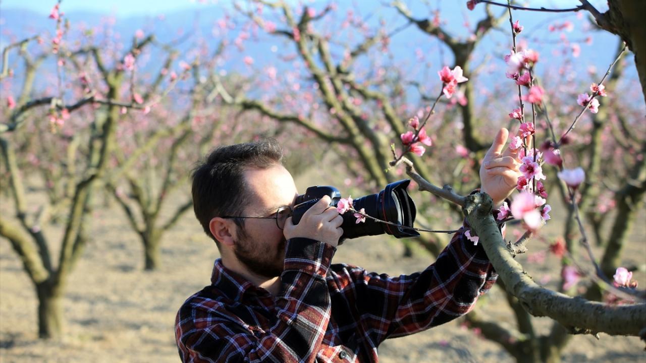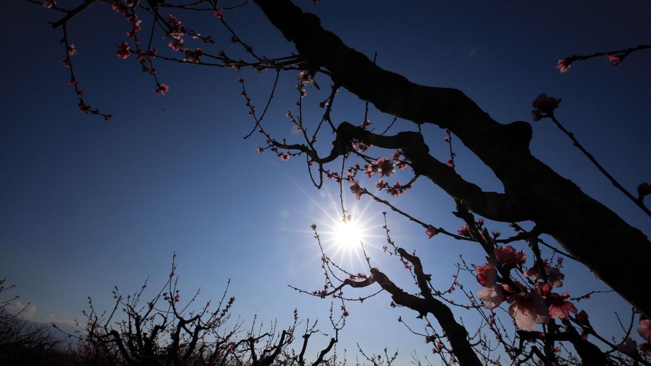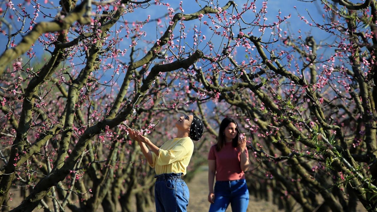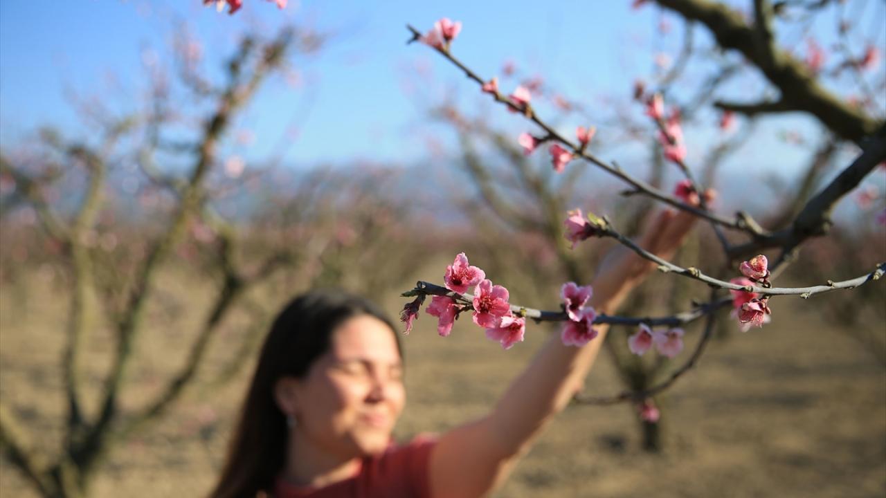 Ege Bölgesi'nin önemli turizm merkezlerinden Kuşadası ilçesindeki şeftali bahçelerinde ağaçlar çiçek açtı.