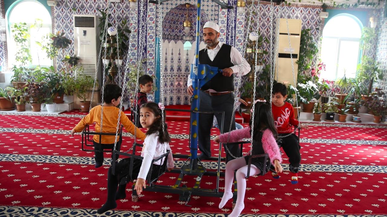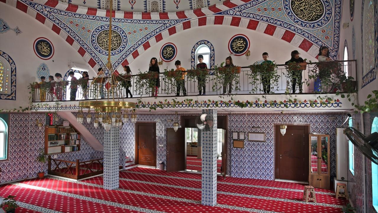 Mersin'de imam hatip Abdülkadir Koçar'ın saksı çiçekleriyle donattığı camiye giden çocuklar, hem kendilerine hediye edilen rengarenk bitkilerin bakımını yapıyor hem de Kur'an-ı Kerim öğreniyor.
