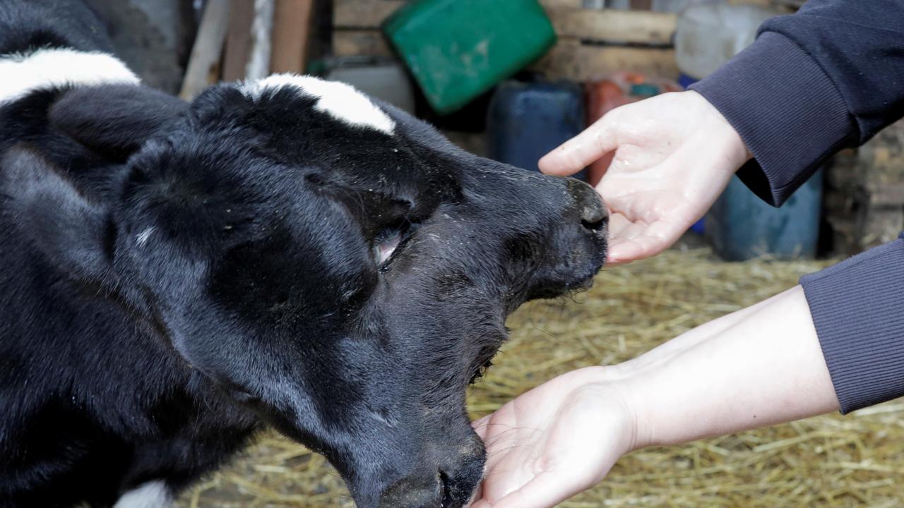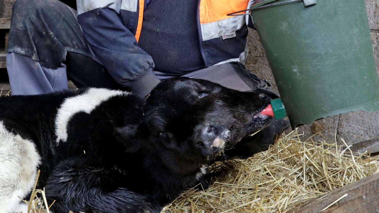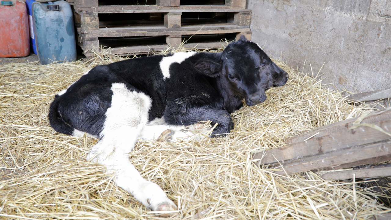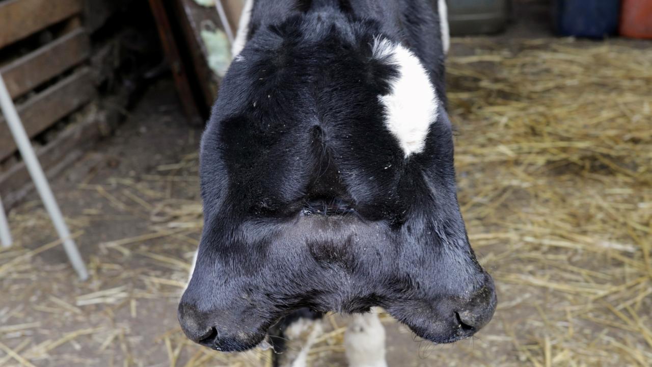 Kuzey Makedonya'nın Lazec bölgesinde iki çift göz, iki ağız ve bir çift kulağı olan iki başlı buzağı dünyaya geldi.