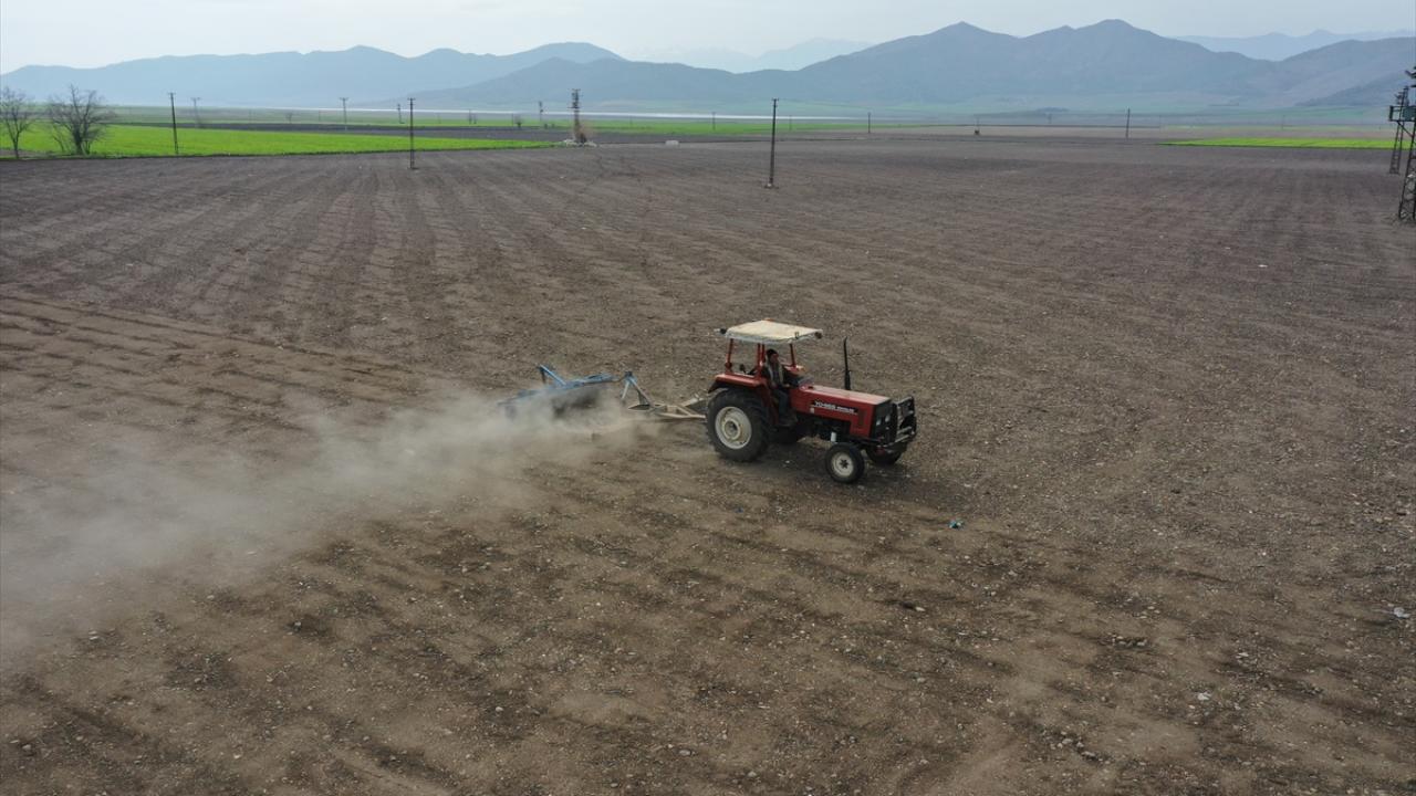 Depremle çalışmalarına ara vermek zorunda kalan çiftçiler, ilkbahar aylarında gerçekleştirilen ekim, sulama ve gübreleme işlemlerini sürdürüyor.