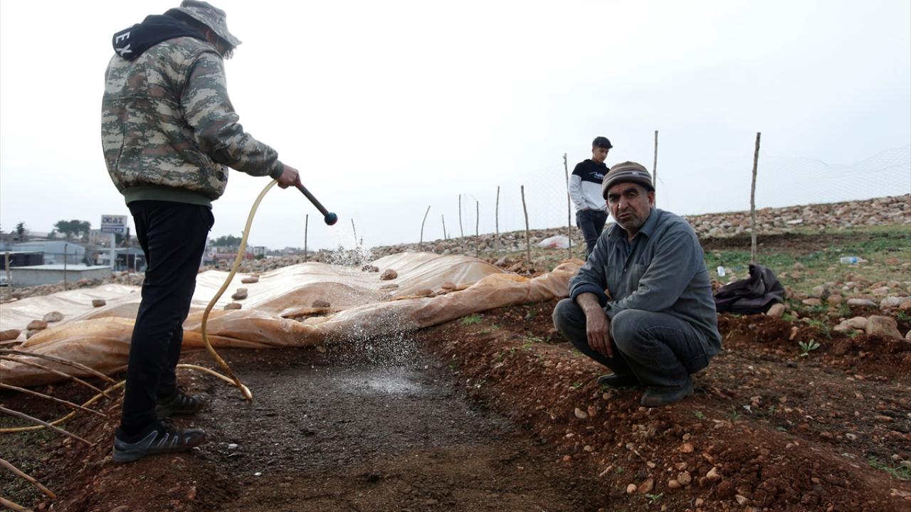 Kahramanmaraş merkezli 6 Şubat'ta meydana gelen depremlerde yakınlarını kaybeden Gaziantep'in İslahiye ilçesindeki çiftçiler, üretimin aksamaması için tarlalarını işliyor.