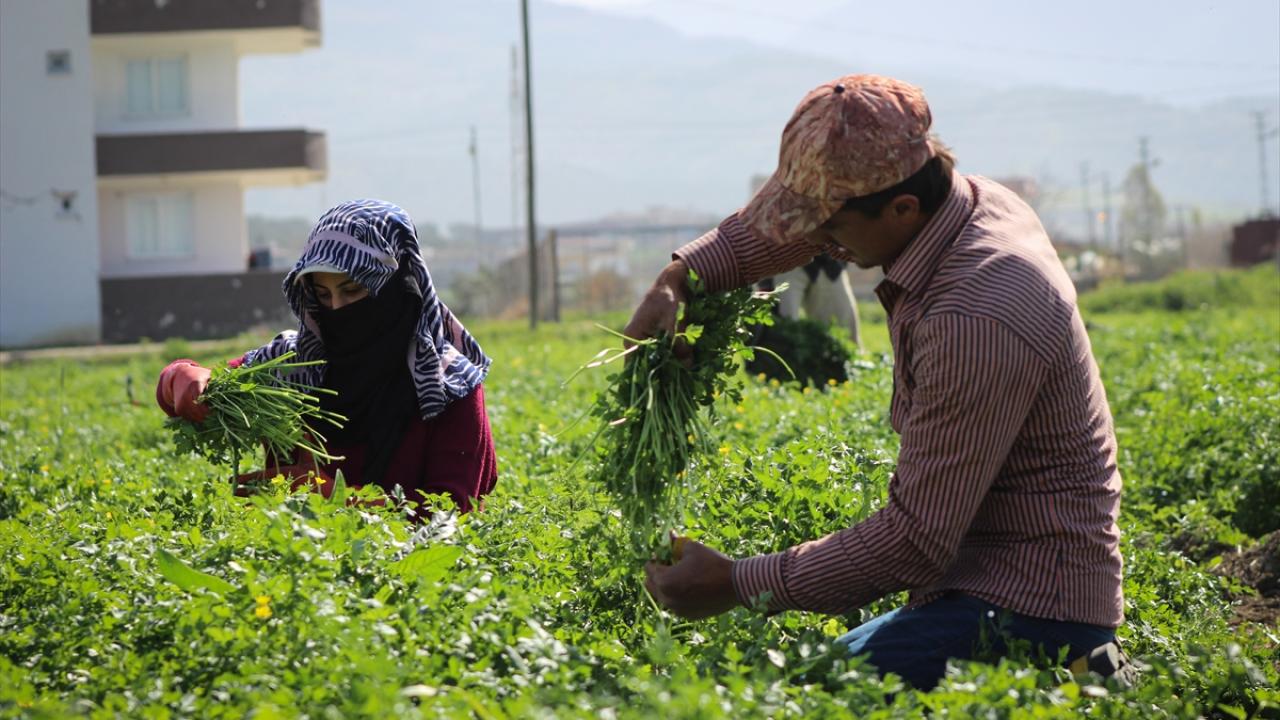 Maydanoz üretimiyle öne çıkan Arsuz`da depremden önce ekimi yapılan ürünün hasat zamanı geldi. Tarlaya giden çiftçiler, ürünlerini toplamaya başladı.