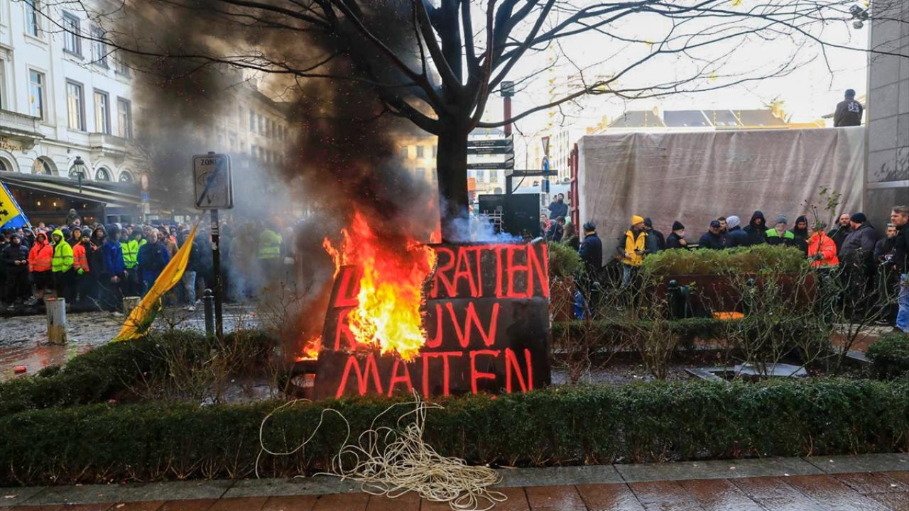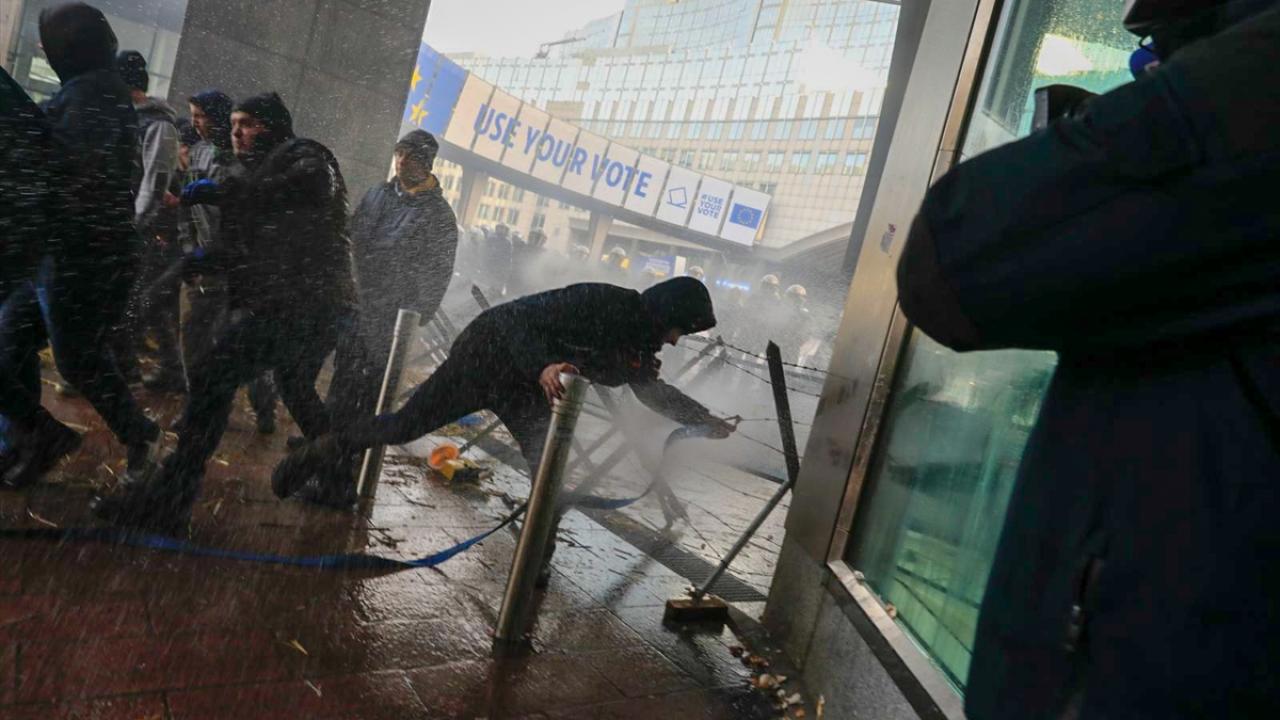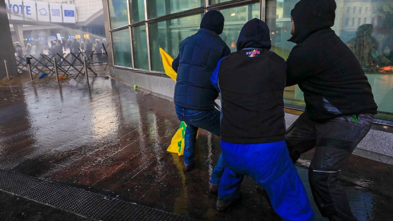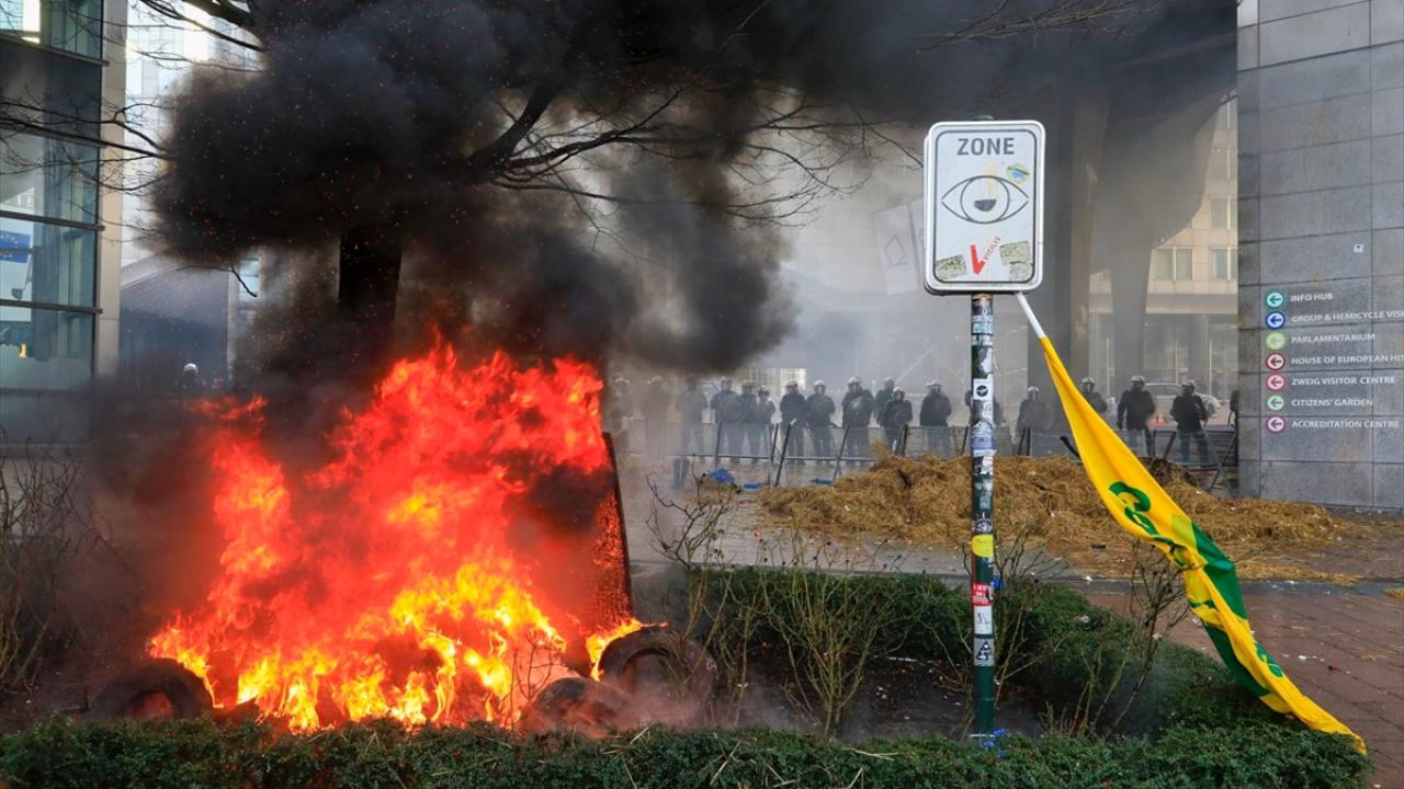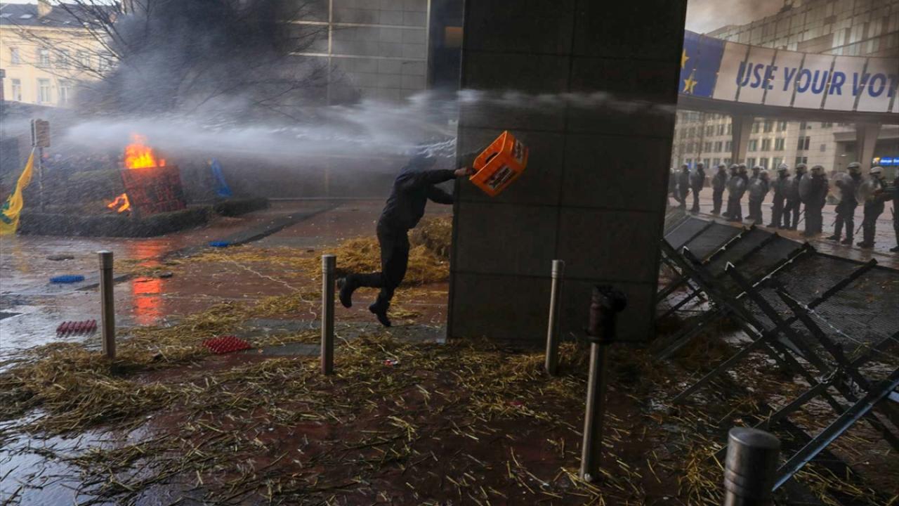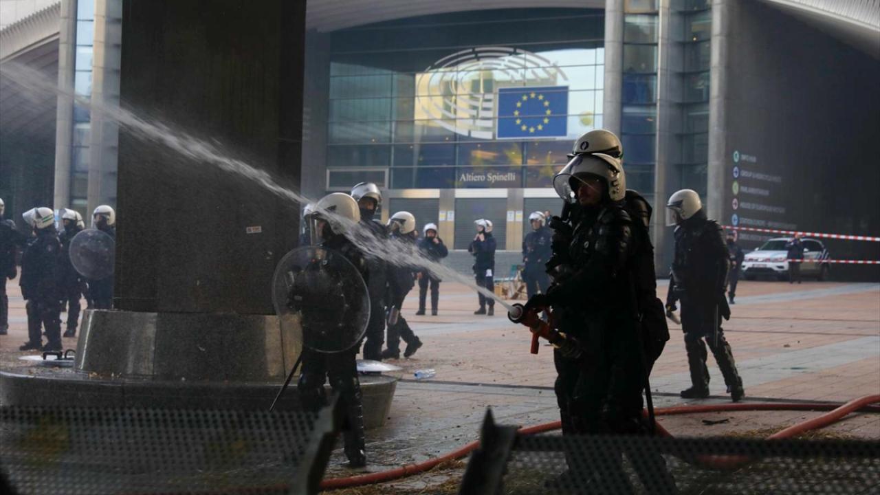 AP binasının önüne tekerlek, tezek ve odunları bırakan çiftçiler, Lüksemburg Meydanı`nda saman ve tezek balyalarını ateşe verdi. Çevreye taş, yumurta ve torpil fırlatan çiftçileri önlemek için Belçika polisi halka açık olan AP yerleşkesi girişlerini dikenli tel örgülerle kapattı.
