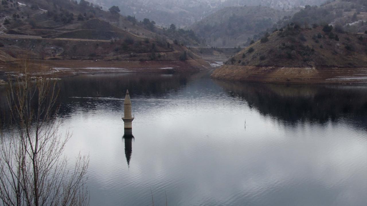 Önceki yıllara nazaran su seviyesi düşen baraj gölünün ortasındaki minarenin büyük bir bölümü de yeniden ortaya çıktı.