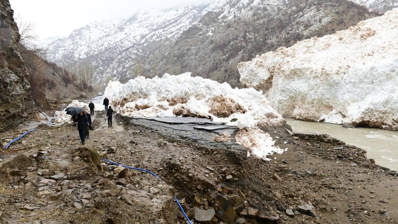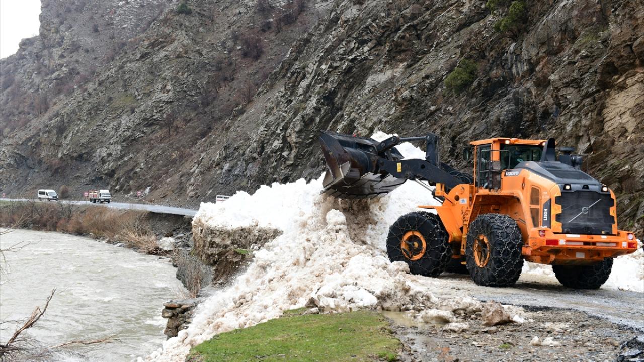 İş makineleriyle yolda biriken kar yığınını temizleyen ekipler, yolun tahrip olan bölümlerini de onardıktan sonra ulaşıma açmayı hedefliyor.