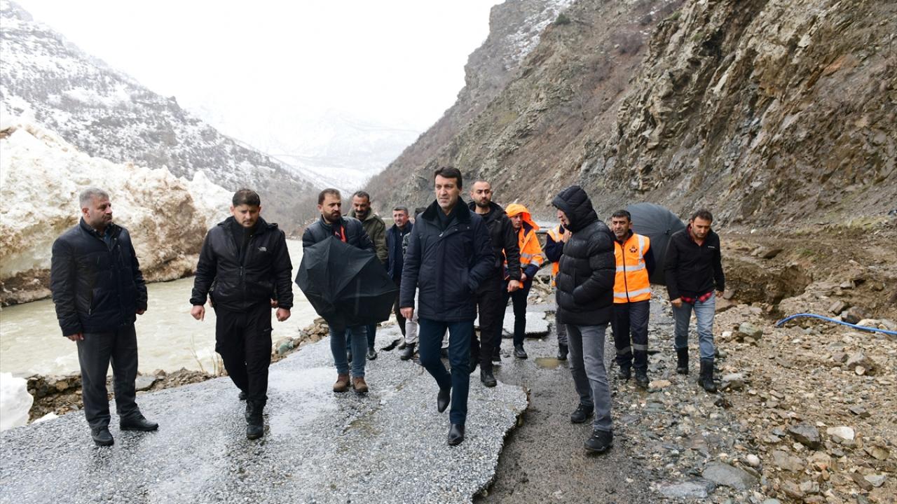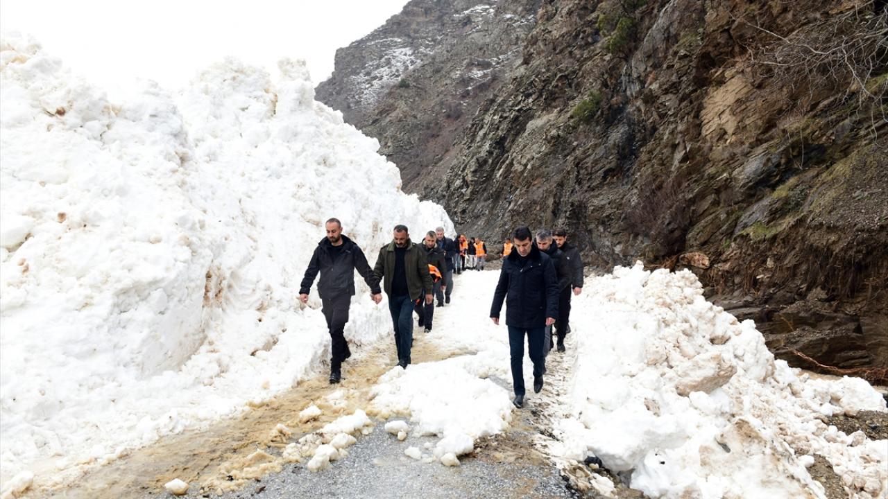 Çatak Belediye Başkanı Abdurrahman Şeylan, Karayolları 11. Bölge Müdürü Demirhan Erol ve Van Büyükşehir Belediyesi Yol Bakım Onarım Daire Başkanlığı Çatak Şantiye Şefi Sıtkı İnal, çığ bölgesinde incelemelerde bulundu, görevlilerden bilgi aldı.