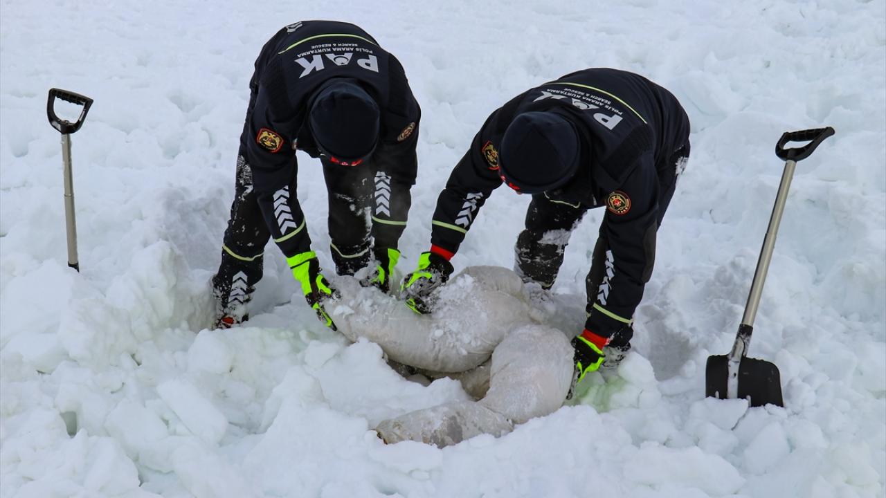 Polisler, yerini tespit ettikleri 4 avcıyı kar altından çıkarıp UMKE ekiplerine teslim etti.
