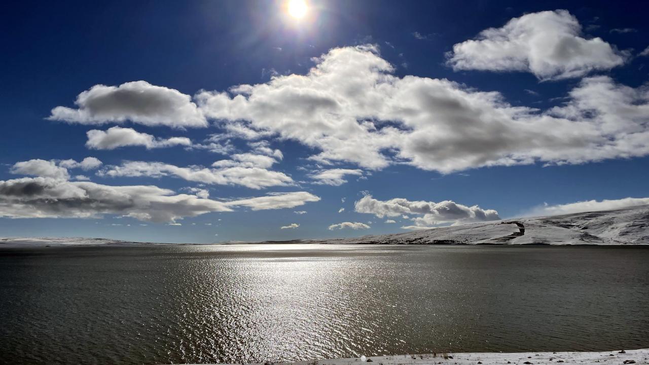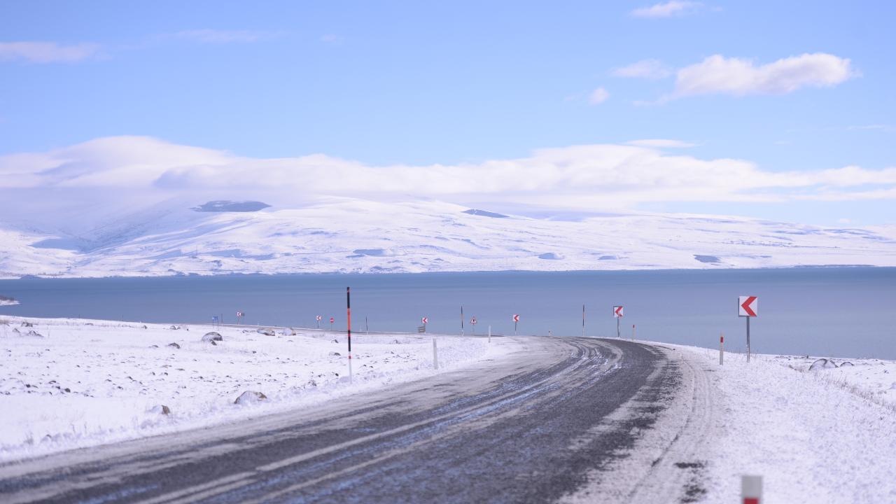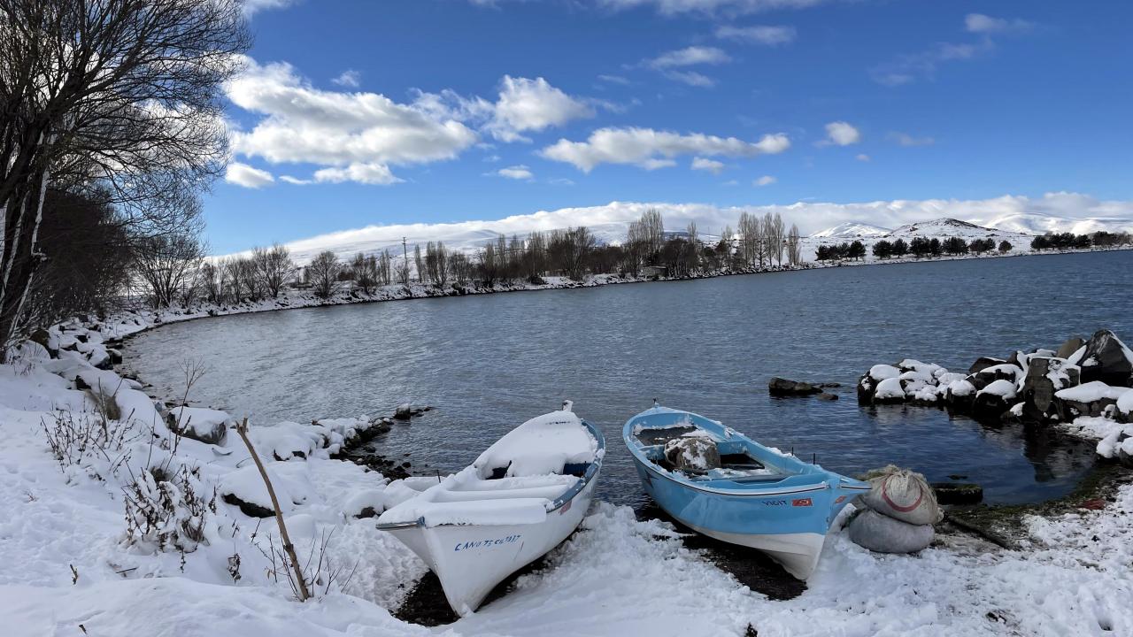 Doğal güzelliği ile yerli ve yabancı turistlerin beğenisini toplayan Çıldır Gölü çevresi tamamen beyaz örtüyle kaplandı.