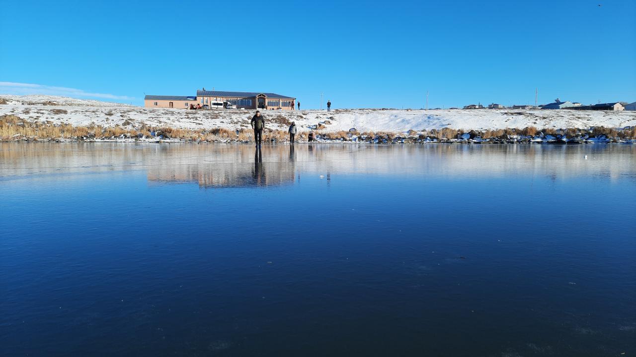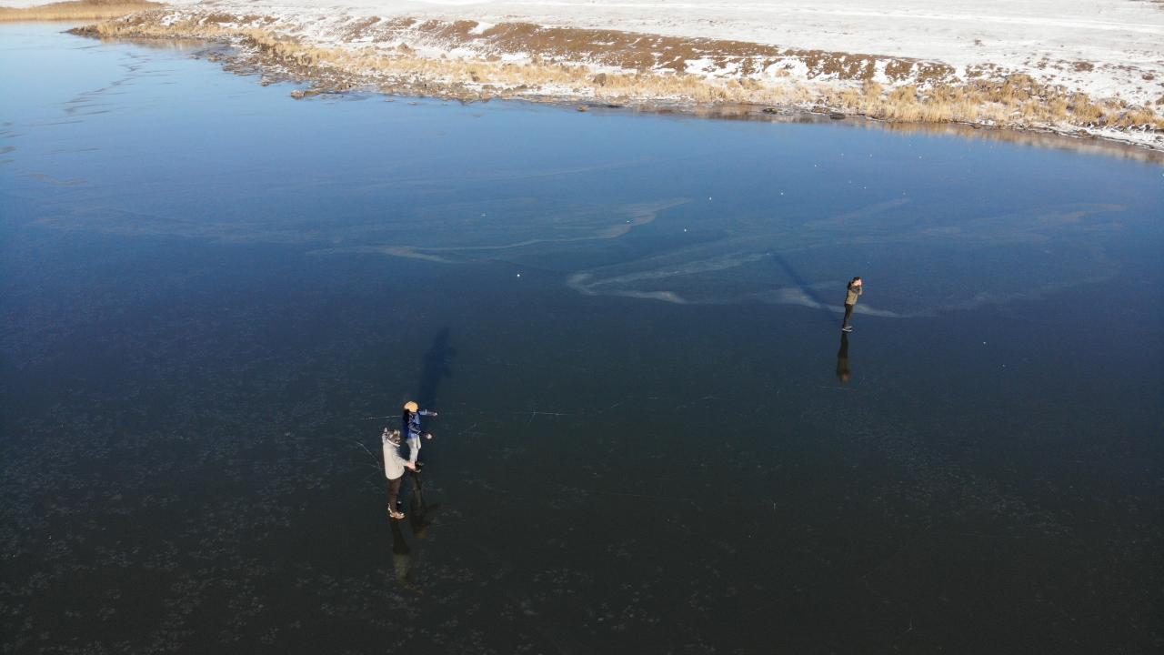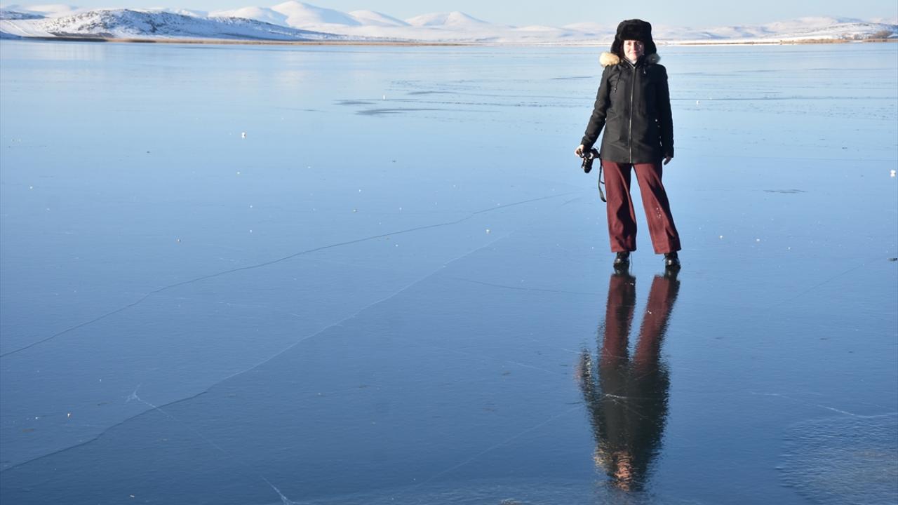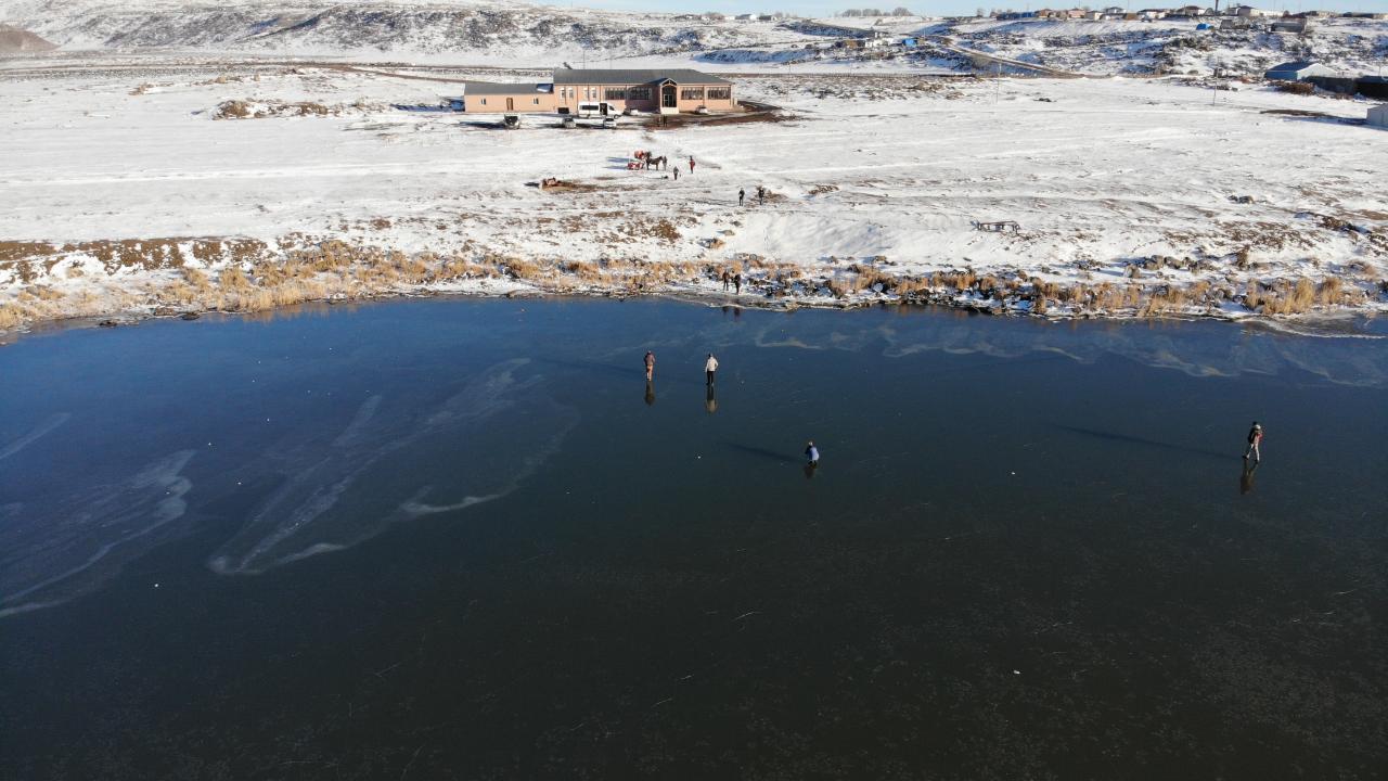 Kars'ta son günlerde etkili olan soğuk hava, Çıldır Gölü'nün bir kısmını dondurdu. Vatandaşlar buz tutan gölün üzerinde yürüdü, fotoğraf çekti.