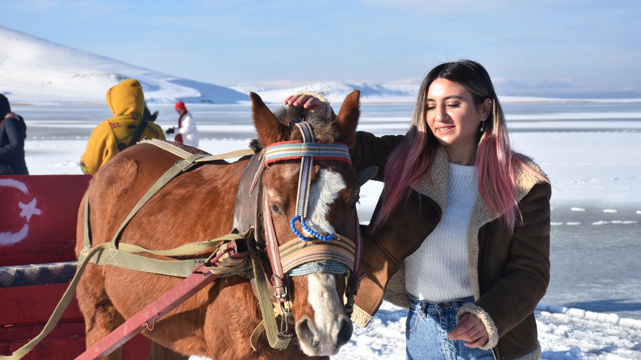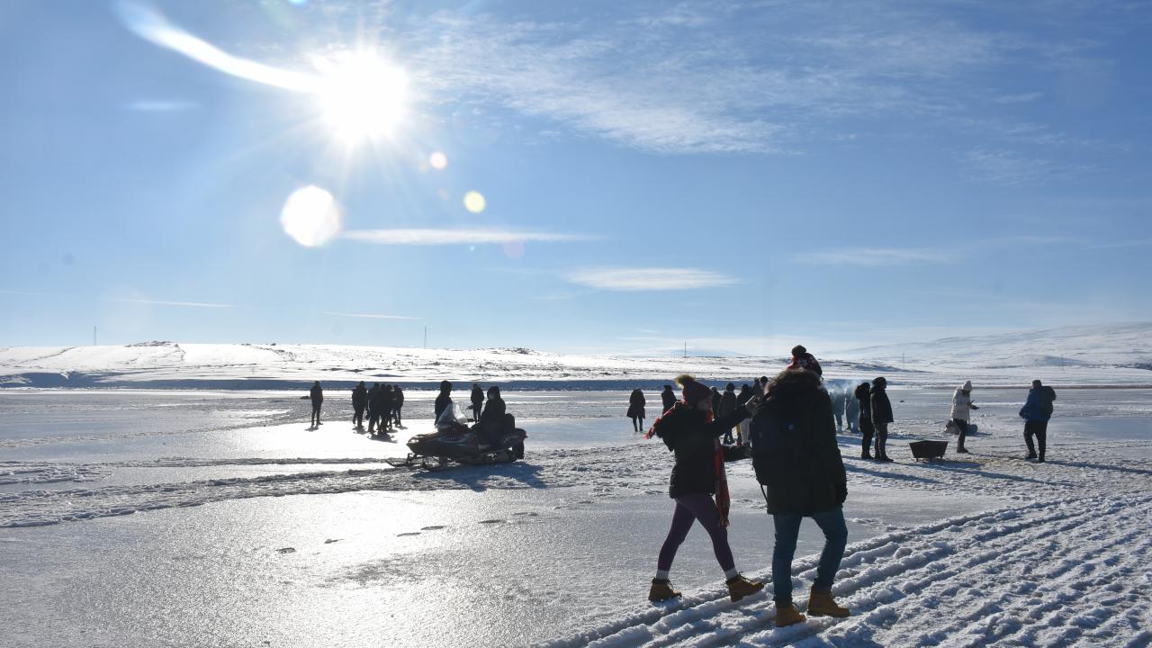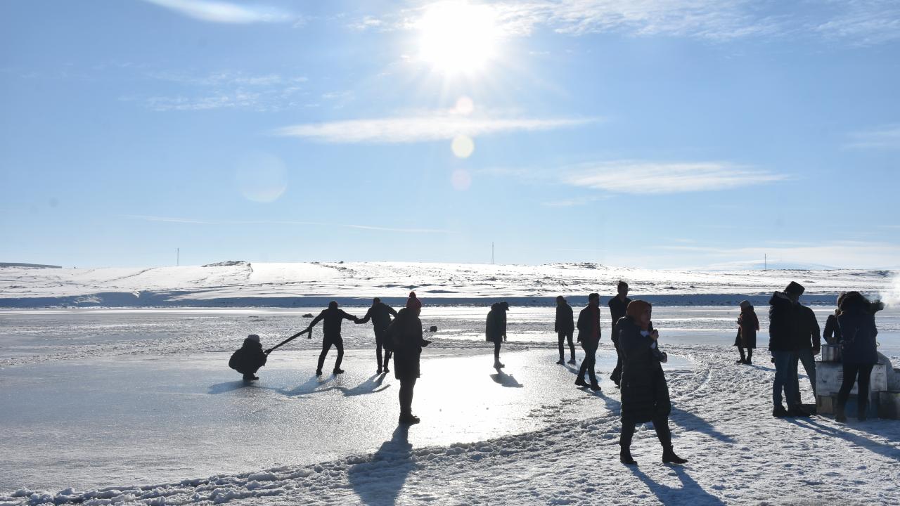 Hafta sonunda yerli ve yabancı çok sayıda turistin bölgeye geldiğini aktaran Daşdemir, "Bu da bizi mutlu ediyor. Buzun üzerinde soba kurduk turistlere çay ve kuşburnu ikram ediyoruz, herkesi bekliyoruz" dedi.
