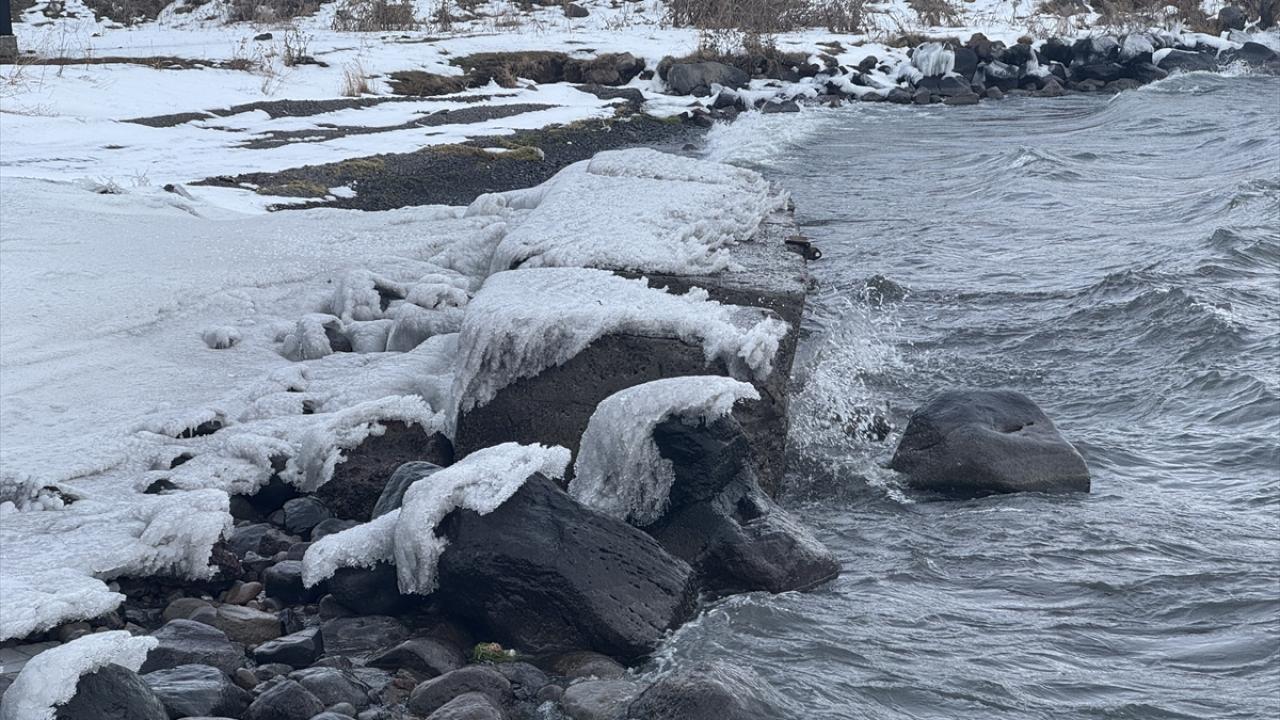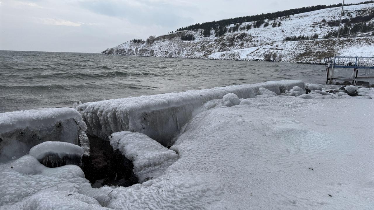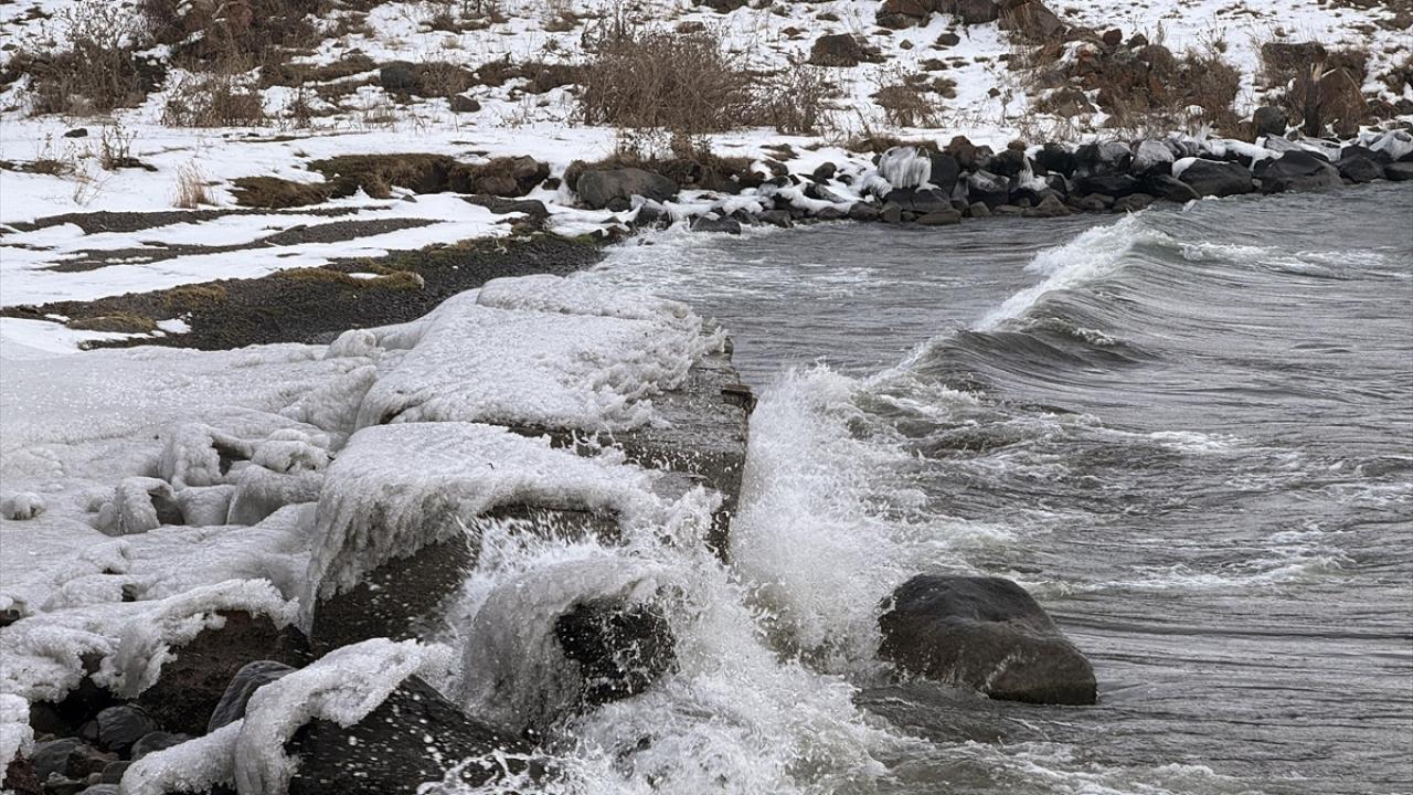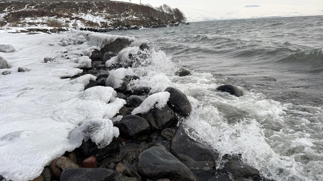 Soğuk nedeniyle Ardahan ve Kars arasında bulunan Çıldır Gölü`nün yüzeyinin bazı kesimleri buz tuttu, donmayan bölgelerde ise rüzgarın etkisiyle dalgalar oluştu.